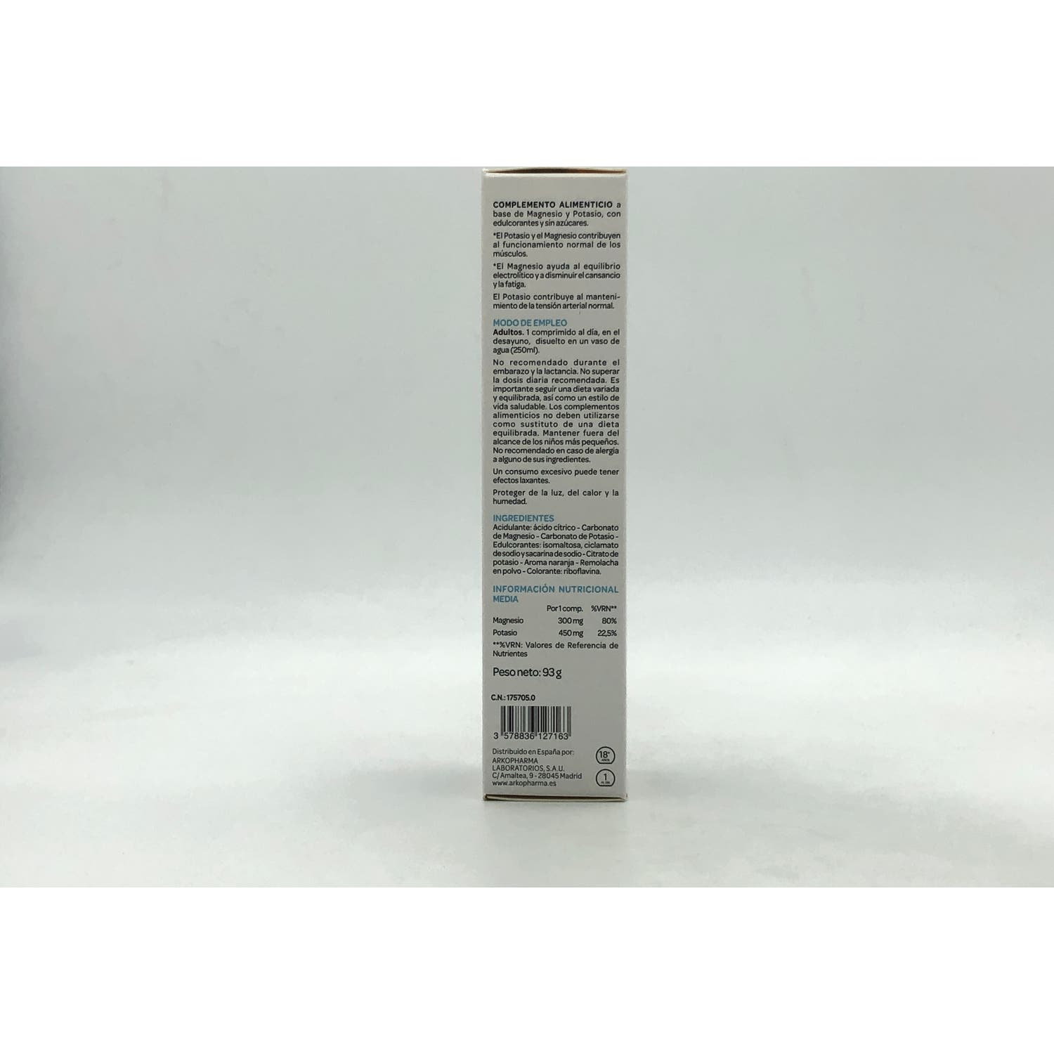 Formulado a base de Magnesio y Potasio, que dan soporte al funcionamiento de los músculos. El Magnesio ayuda a disminuir el cansancio y la fatiga y el Potasio que favorece el mantenimiento de la tensión arterial normal. Contiene edulcorantes y sin azúcares.