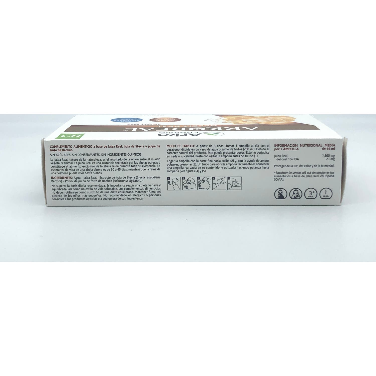 Arkopharma Arkoreal Jalea Real 1500mg Sin Azúcar 20ampollas es un complemento alimenticio compuesto principalmente por jalea real que contribuye a elevar las energías y a ofrecer un soporte reconstituyente.