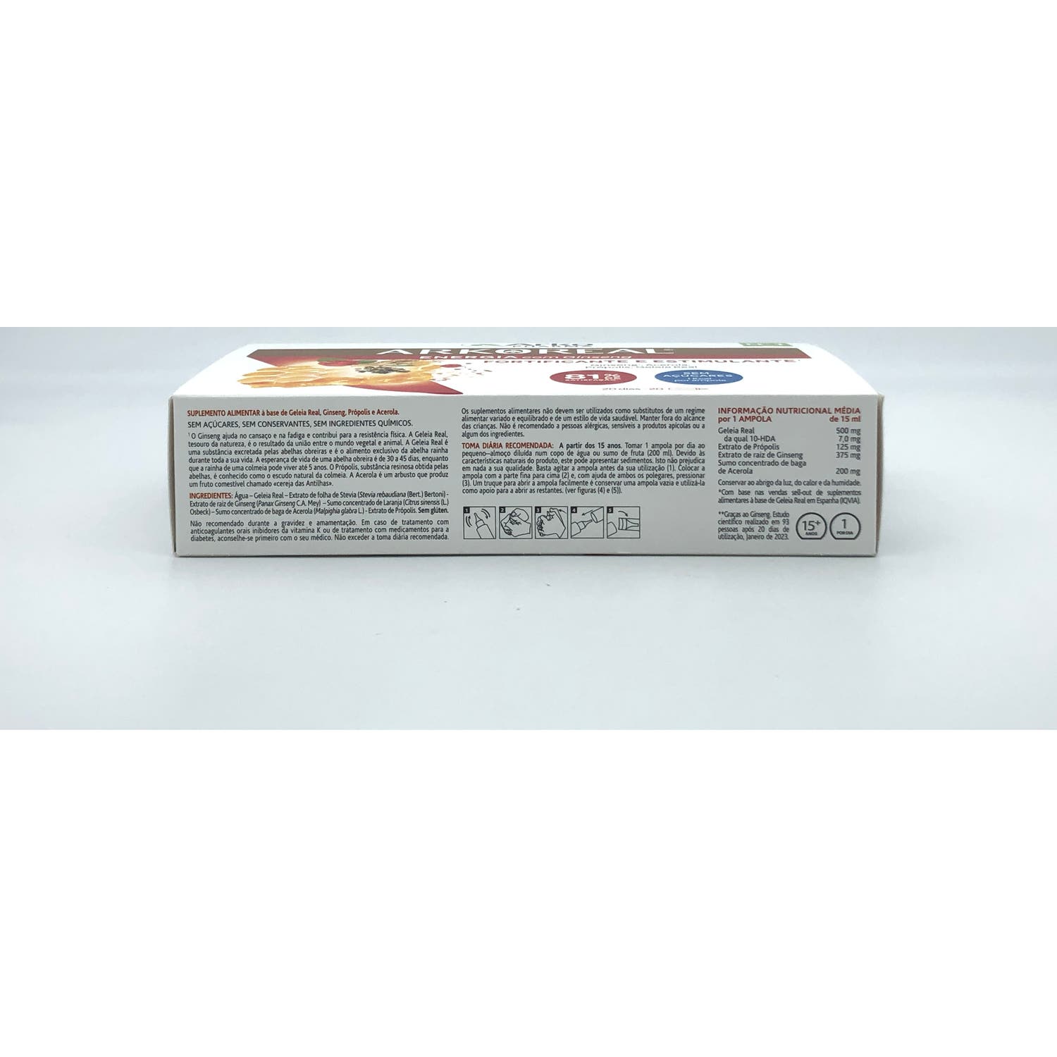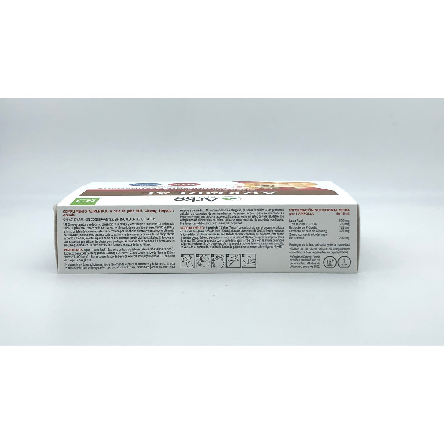Elaborado a base de própolis, ginseng (Panax ginseng) que aportan un efecto estimulante y Acerola.