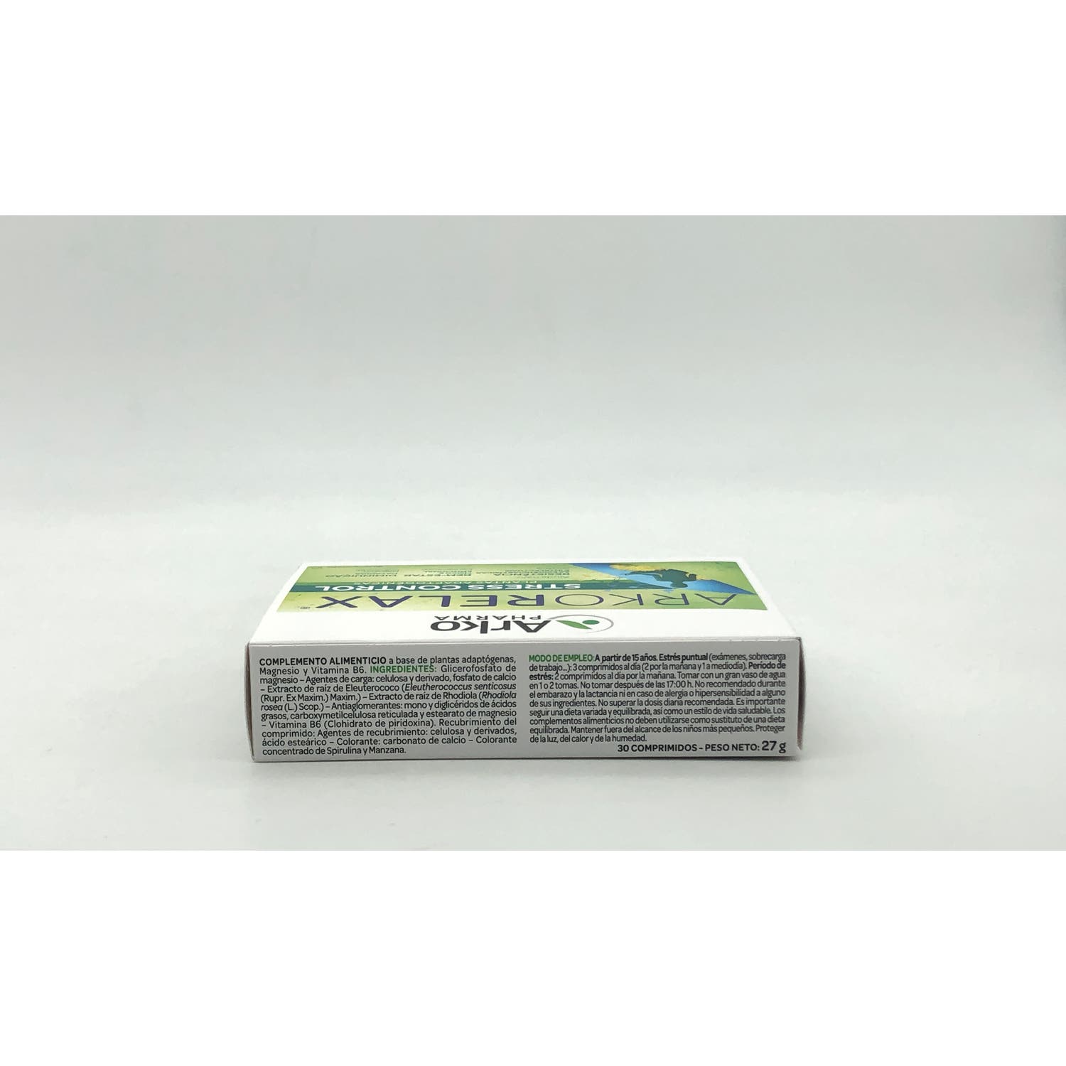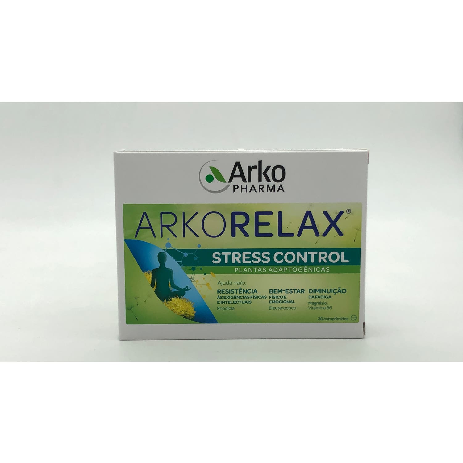 Arkopharma Arkorelax Estrés Control 30comp es un complemento alimenticio a base de magnesio, vitamina B6 y extractos de plantas adaptógenas que ayudan a sobrellevar mejor las épocas de estrés, como picos de trabajo o exámenes.
