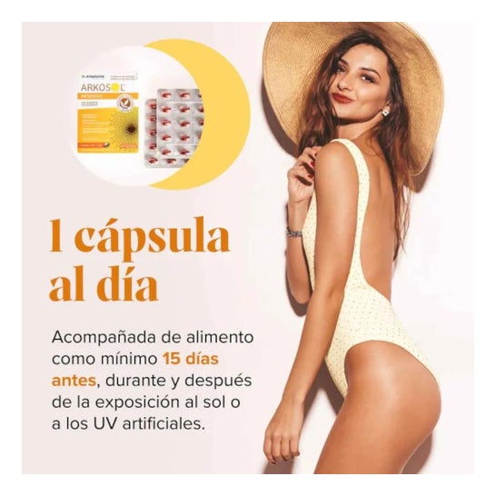 Tomar 1 cápsula diariamente, unos días antes de tomar sol.