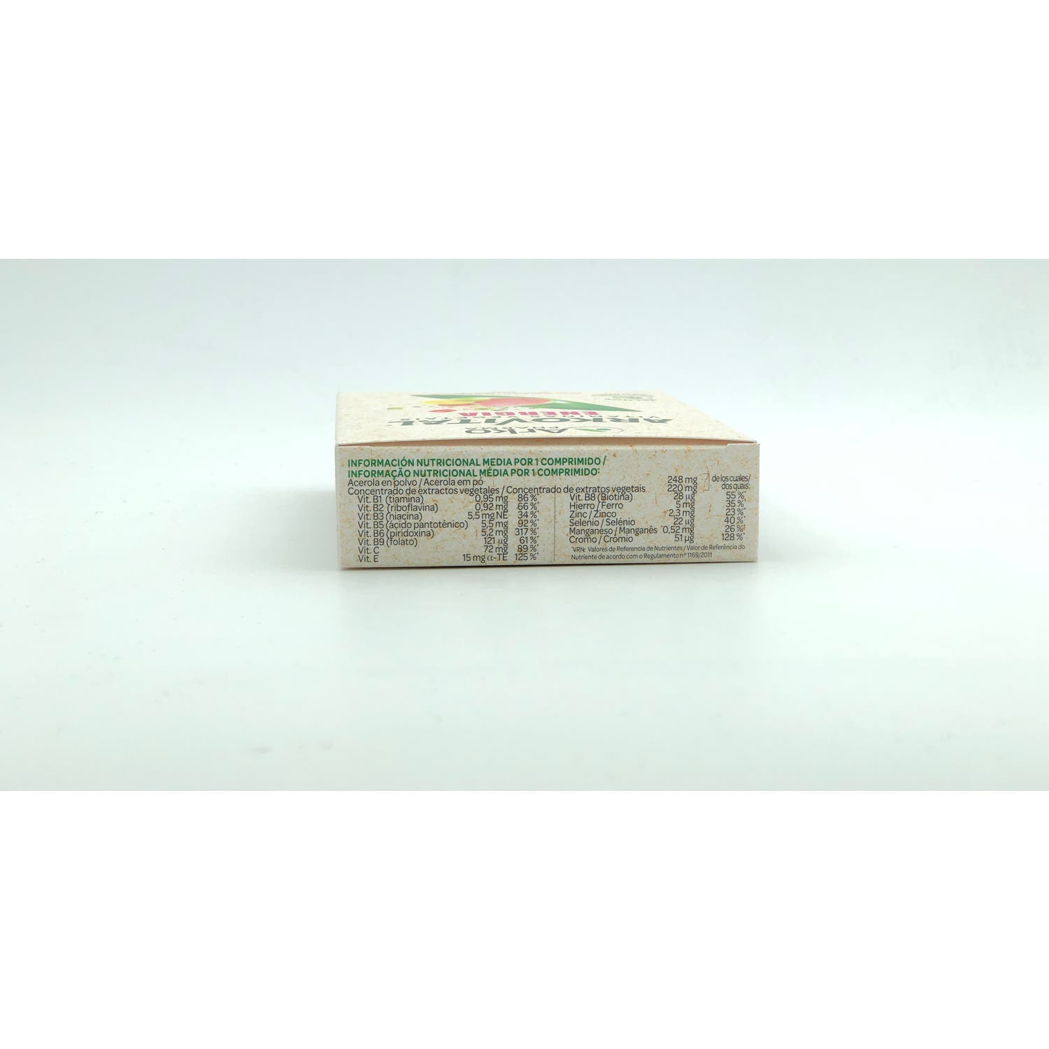 Formulado con una combinación de 9 vitaminas y 5 minerales extraídos de frutas y plantas. Además, de hierro, selenio y zinc, ayuda a fortalecer las defensas, mientras que las vitaminas B2, B3, B5, B6, B9 y C ayudan a mantener una buena forma física.