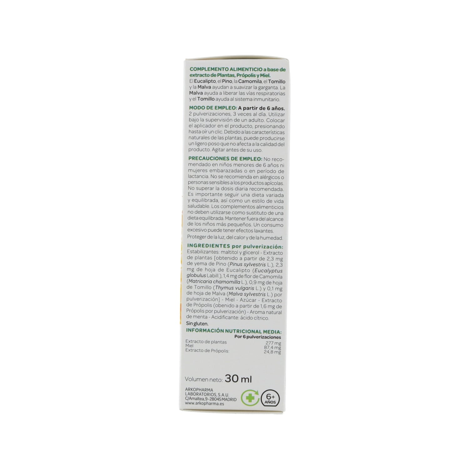 Arkopharma Arkovox Spray Própolis 30ml es un spray de própolis que ayuda a aliviar la garganta y suavizar la tos. El própolis o propóleo es una resina natural elaborada por las abejas a partir de las yemas y las cortezas de algunos árboles para cubrir sus colmenas y protegerlas de virus, bacterias y hongos. Su uso natural se debe a sus propiedades antibióticas, antivirales e inmunoestimulantes.