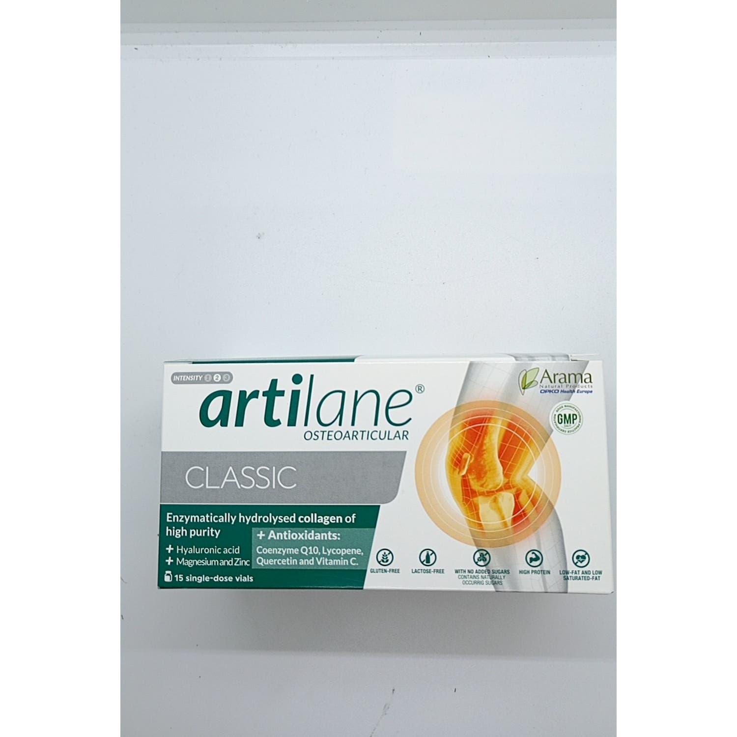 Artilane Classic 15 Viales es un complemento alimenticio que contribuye a combatir procesos degenerativos articulares y a reducir las molestias y la fatiga física asociada a estos procesos.