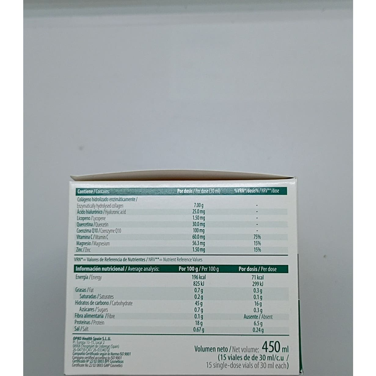 Formulado con colágeno hidrolizado y ácido hialurónico que dan soporte a la regeneración del cartílago y el líquido sinovial, el licopeno, la quercetina y la vitamina C que ayudan a bloquear la reacción oxidativa y además, contiene Q10, magnesio y zinc. Además, contribuyen a reducir la rigidez y reducen las molestias y el cansancio.