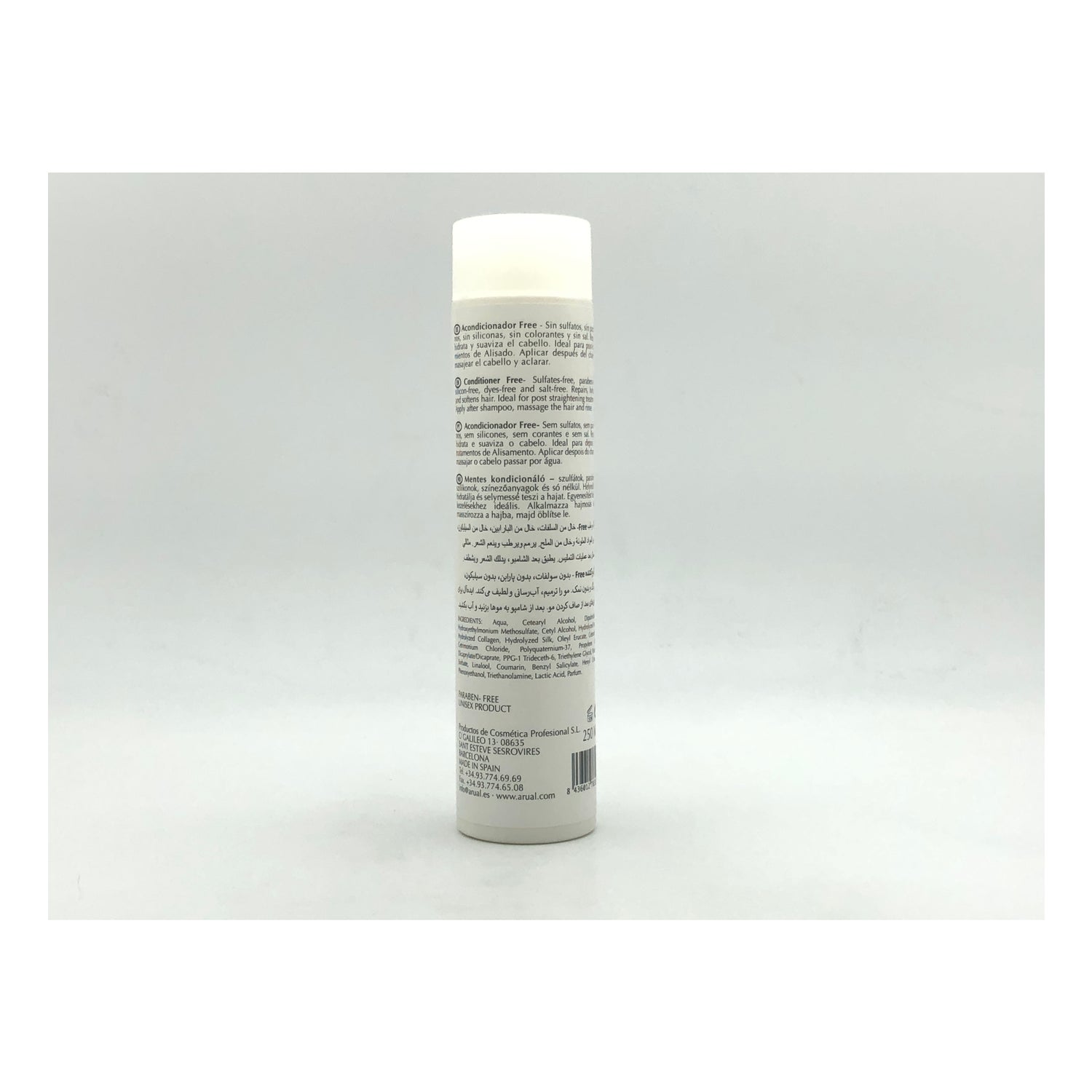 Acondicionador Free sin sulfatos, sin parabenos, sin siliconas, sin colorantes, sin sal.