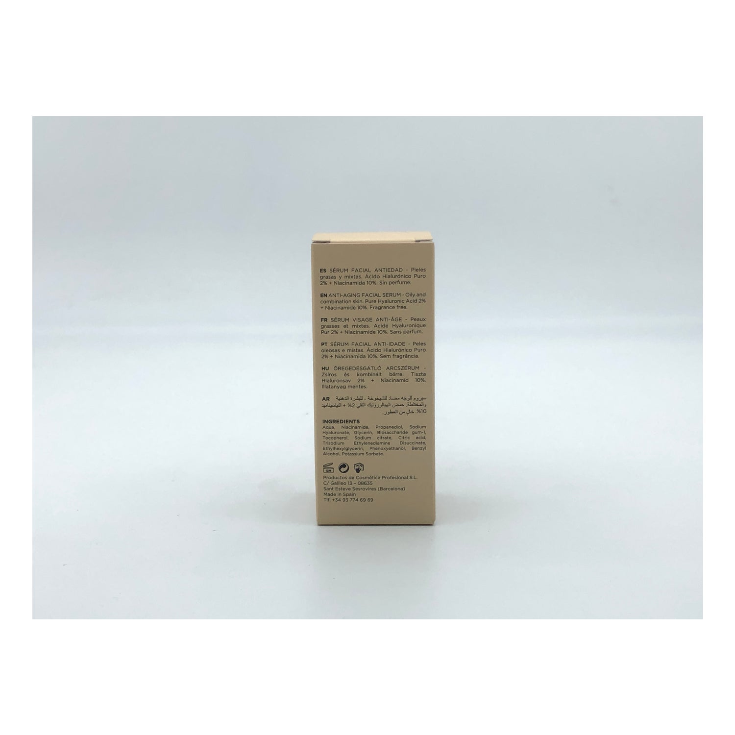 Aqua, Niacinamide, Propanediol, Sodium Hyaluronate, Glycerin, Biosaccharide gum-1, Tocopherol, Sodium citrate, Citric acid, Trisodium Ethylenediamine Disuccinate, Ethylhexylglycerin, Phenoxyethanol, Benzyl Alcohol, Potassium Sorbate.