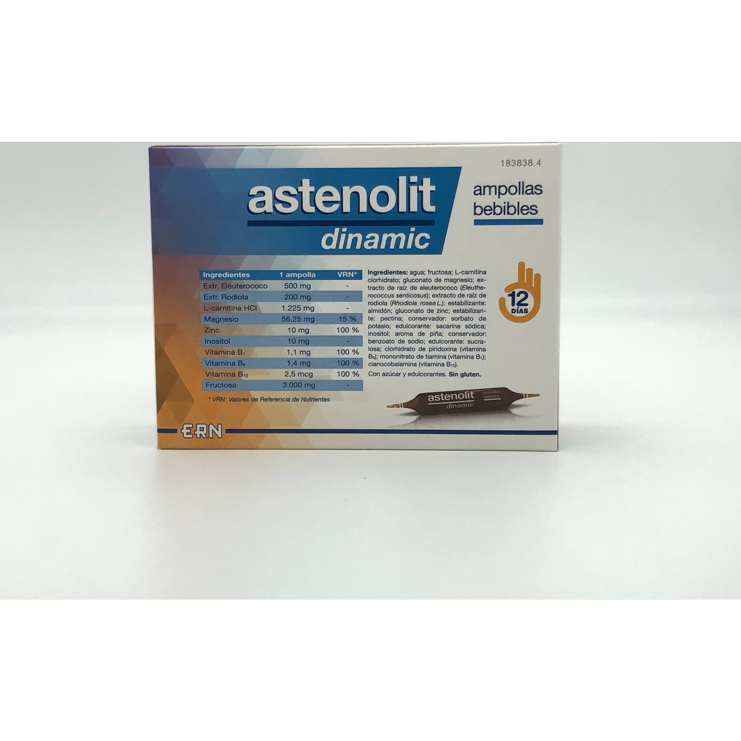 Astenolit Dinamic 12 Ampollas Bebibles es un complemento alimenticio formulado a base de eleuterococo, rodiol, L-carnitina, magnesio, zinc, inositol y vitaminas del grupo B. Gracias a la combinación de estos componentes y a sus propiedades, este complemento alimenticio aporta un plus necesario cuando lo necesites, además de ayudar a reducir el cansancio y la fatiga.