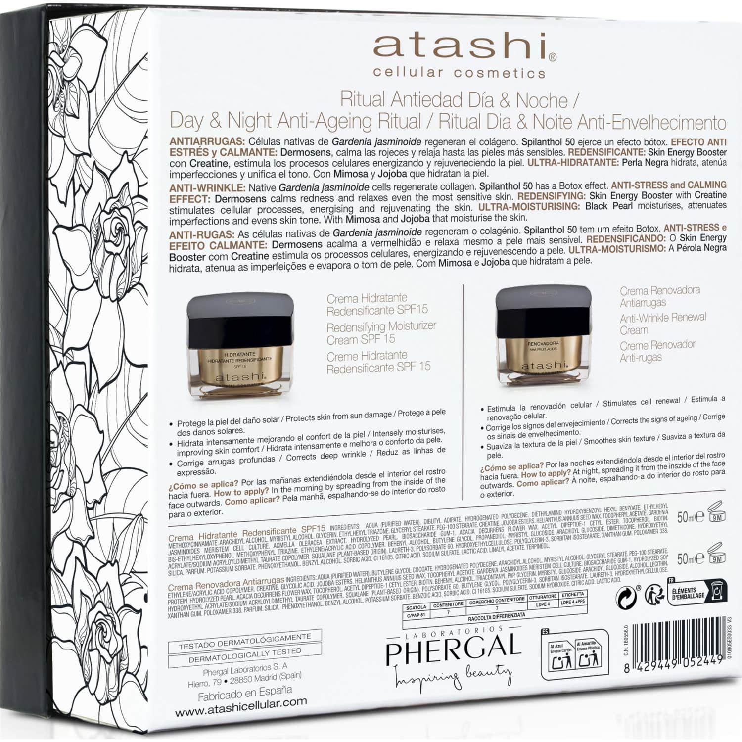 Atashi® Crema Renovadora Celular 50ml: Es un tratamiento facial que repara el ADN de la piel mientras duermes, dejándola más tersa y suave al despertar. Elaborada con las propiedades de las células madre del jazmín de Gardenia y el extracto de perla negra, dos ingredientes muy adecuados para combatir el envejecimiento cutáneo.