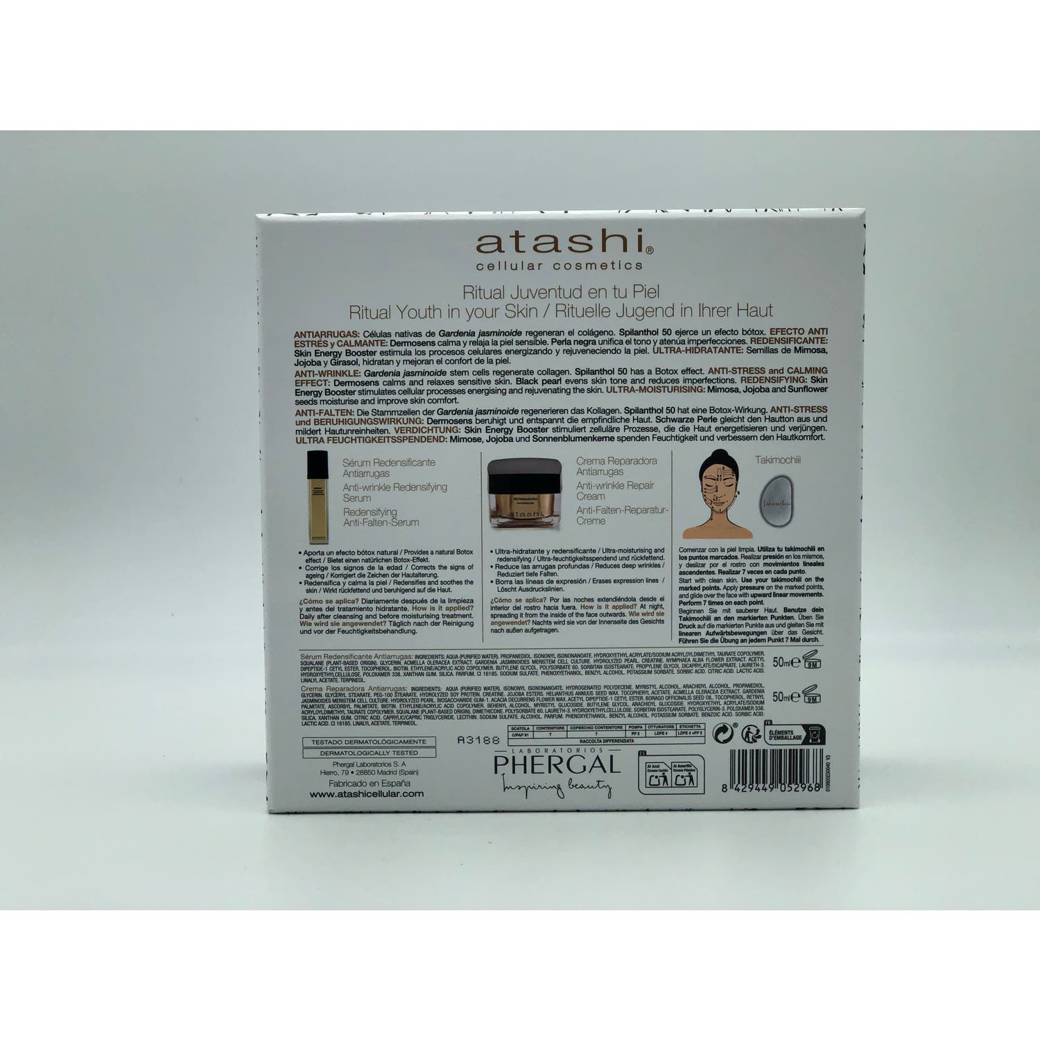 Atashi Cofre Antiedad Sérum 50ml + Crema Reparadora 50ml es un cofre compuesto por: