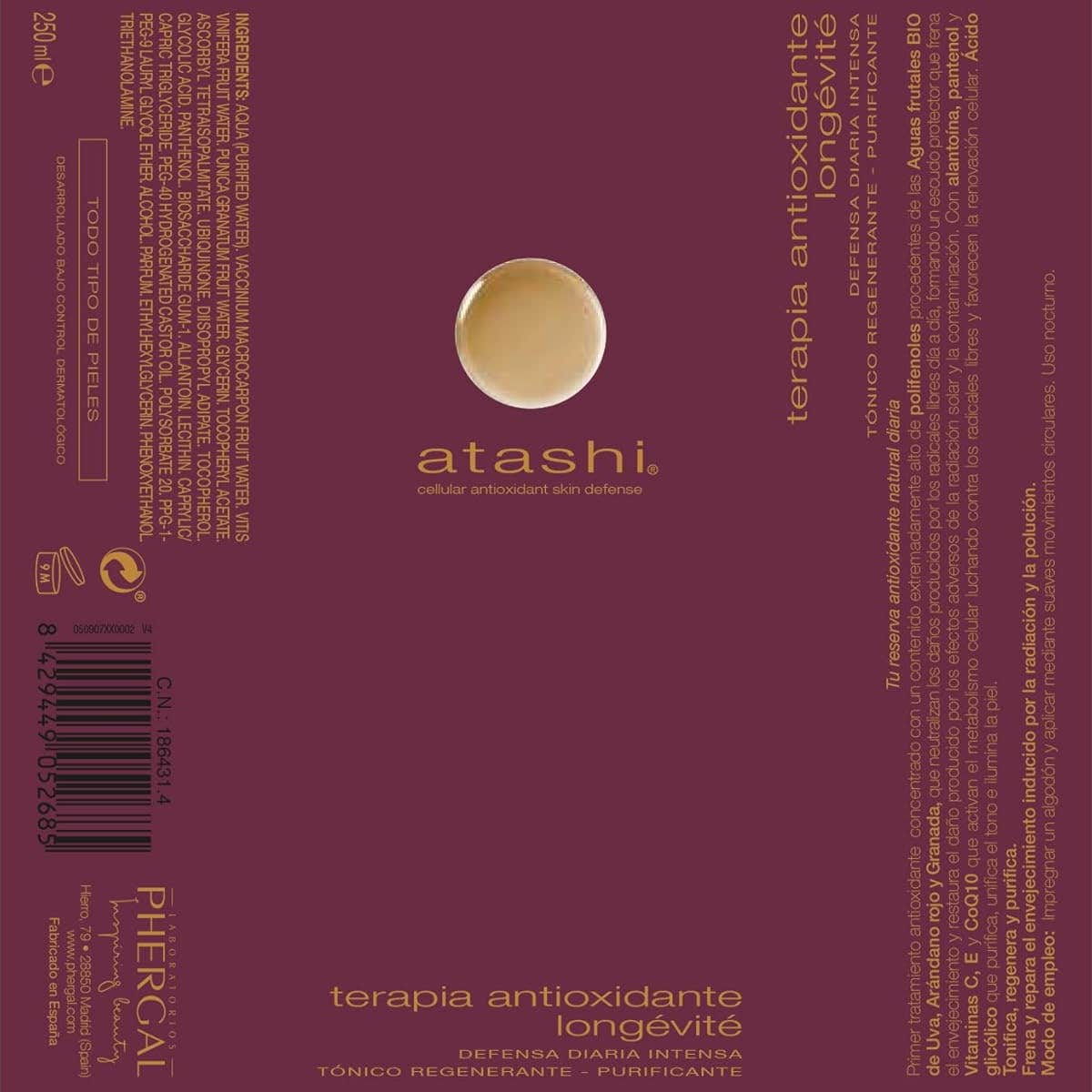 Atashi® Tónico Regenerante Purificante 250ml es un tónico que prepara la piel para recibir su tratamiento habitual y contribuye a alisarla y eliminar sus imperfecciones.