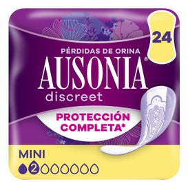Ausonia Discreet Mini Compresas Incontinencia 24 uds para pérdidas de orina leves ofrecen una protección discreta y segura en situaciones cotidianas como estornudos o risas. Su diseño ultrafino se adapta a la ropa interior y aporta confianza en el día a día.