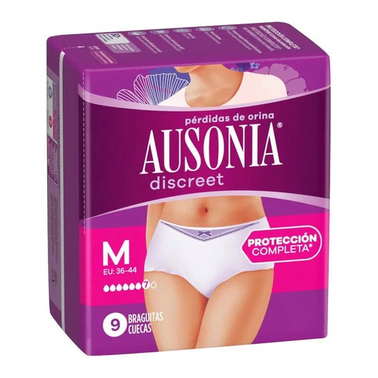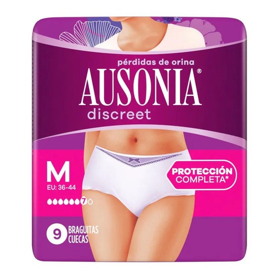 Ausonia Discreet Pant Plus T-M 9uds son unas compresas en formato braga que ayudan a absorber las pérdidas de orina y a eliminar el mal olor.