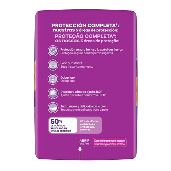 Diseñadas con un núcleo absorbente ultrafino para una gran discreción y sistema OdourLock, bloquea la humedad y neutraliza el olor de forma rápida y eficaz.