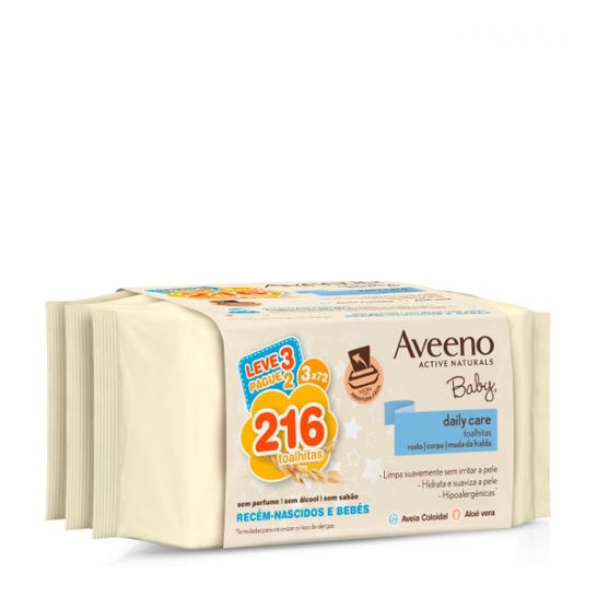 Aveeno Pack Baby Toalhitas Limpeza 3X72 Unidades