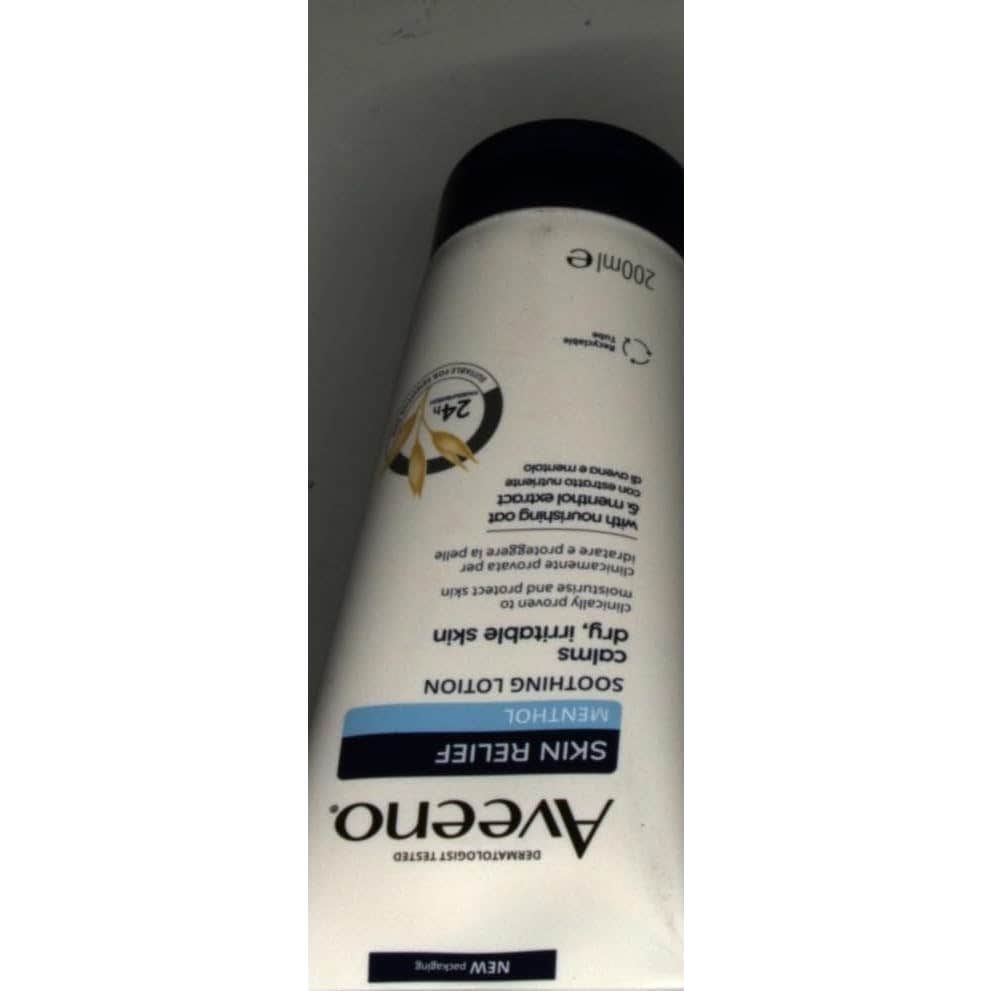 Crema Aveeno Skin Relief Menthol 200 ml es una loción calmante ideal para piel seca y con picor, con fragancia.