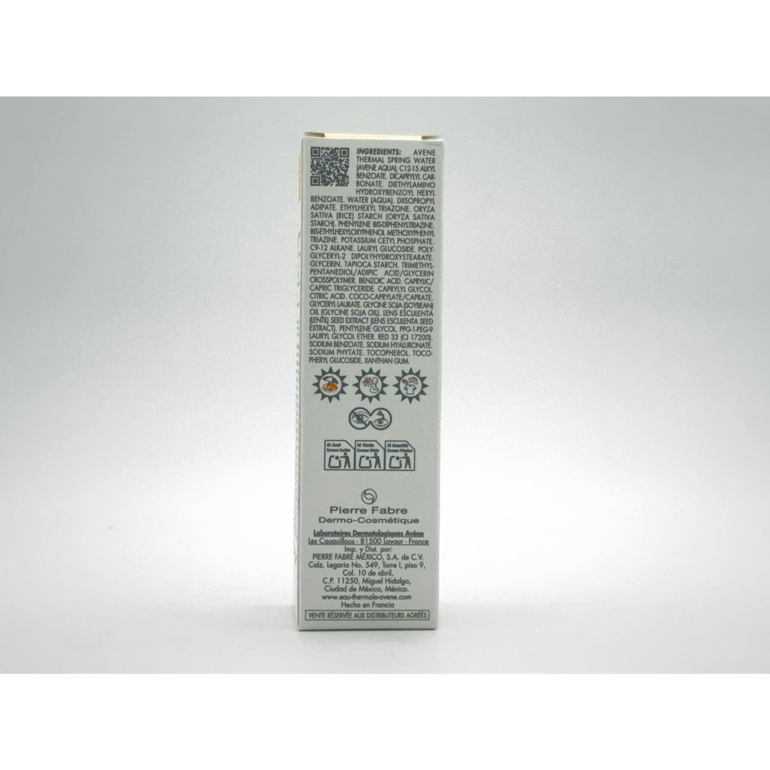 AVENE THERMAL SPRING WATER (AVENE AQUA). C12-15 ALKYL BENZOATE. DICAPRYLYL CARBONATE. DIETHYLAMINO HYDROXYBENZOYL HEXYL BENZOATE. WATER (AQUA). DIISOPROPYL ADIPATE. ETHYLHEXYL TRIAZONE. ORYZA SATIVA (RICE) STARCH (ORYZA SATIVA STARCH). PHENYLENE BIS-DIPHENYLTRIAZINE. BIS-ETHYLHEXYLOXYPHENOL METHOXYPHENYL TRIAZINE. POTASSIUM CETYL PHOSPHATE. C9-12 ALKANE. LAURYL GLUCOSIDE. POLYGLYCERYL-2 DIPOLYHYDROXYSTEARATE. GLYCERIN. TAPIOCA STARCH. TRIMETHYLPENTANEDIOL/ADIPIC ACID/GLYCERIN CROSSPOLYMER. BENZOIC ACID. CAPRYLIC/CAPRIC TRIGLYCERIDE. CAPRYLYL GLYCOL. CITRIC ACID. COCO-CAPRYLATE/CAPRATE. GLYCERYL LAURATE. GLYCINE SOJA (SOYBEAN) OIL (GLYCINE SOJA OIL). LENS ESCULENTA (LENTIL) SEED EXTRACT (LENS ESCULENTA SEED EXTRACT). PENTYLENE GLYCOL. PPG-1-PEG-9 LAURYL GLYCOL ETHER. RED 33 (CI 17200). SODIUM BENZOATE. SODIUM HYALURONATE. SODIUM PHYTATE. TOCOPHEROL. TOCOPHERYL GLUCOSIDE. XANTHAN GUM.