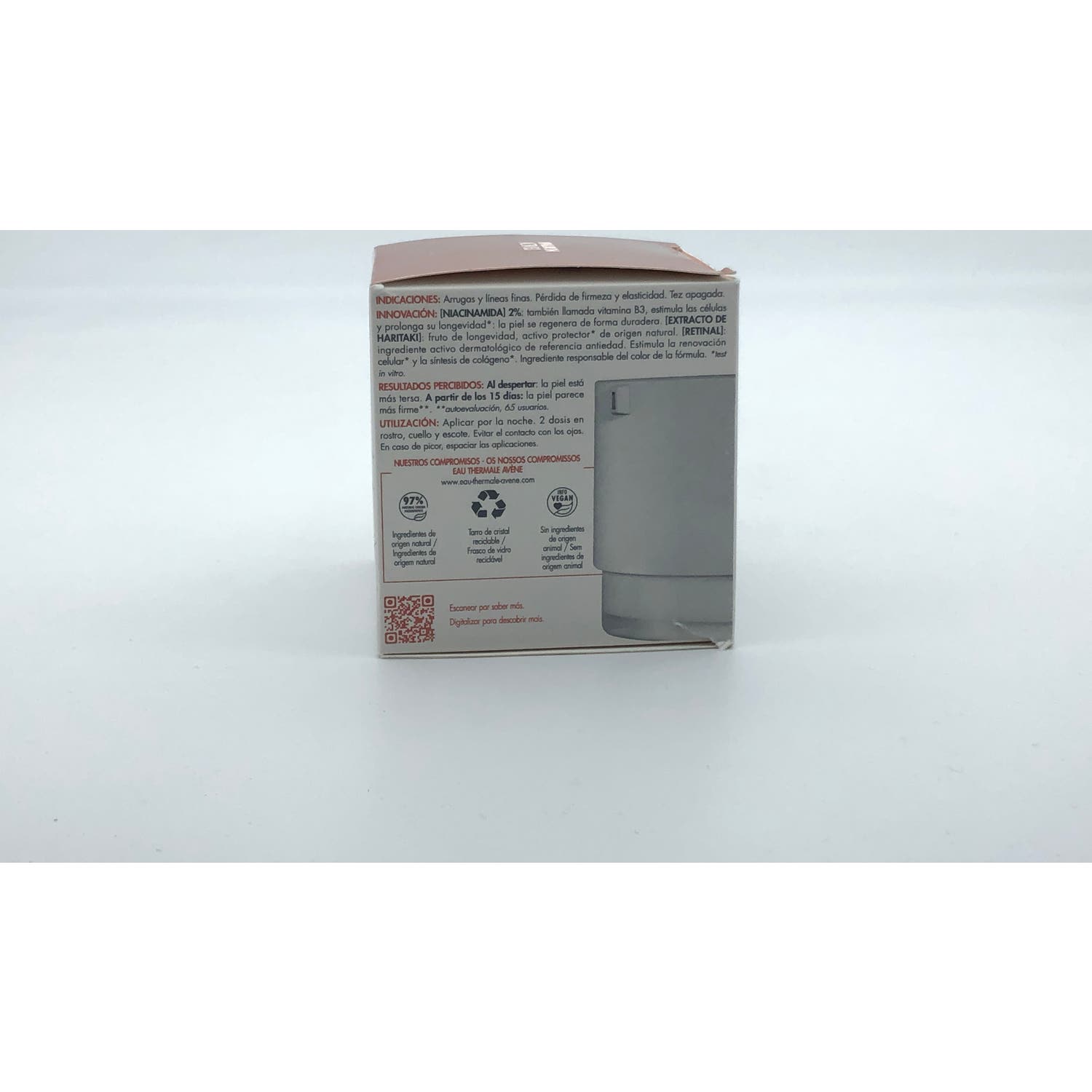 AVENE THERMAL SPRING WATER (AVENE AQUA). CAPRYLIC/CAPRIC TRIGLYCERIDE. GLYCERIN. SQUALANE. BUTYROSPERMUM PARKII (SHEA) BUTTER (BUTYROSPERMUM PARKII BUTTER). CARTHAMUS TINCTORIUS (SAFFLOWER) SEED OIL (CARTHAMUS TINCTORIUS SEED OIL). PENTAERYTHRITYL TETRACAPRYLATE/TETRACAPRATE. CETEARYL ALCOHOL. BEHENYL ALCOHOL. NIACINAMIDE. C20-22 ALKYL PHOSPHATE. C20-22 ALCOHOLS. RETINAL. SODIUM HYALURONATE. TERMINALIA CHEBULA FRUIT EXTRACT. ADENOSINE. ACACIA SENEGAL GUM. CETEARYL GLUCOSIDE. FRAGRANCE (PARFUM). HELIANTHUS ANNUUS (SUNFLOWER) SEED OIL (HELIANTHUS ANNUUS SEED OIL). RED 33 (CI 17200). SODIUM BENZOATE. SODIUM HYDROXIDE. TOCOPHEROL. TOCOPHERYL GLUCOSIDE. WATER (AQUA). XANTHAN GUM.