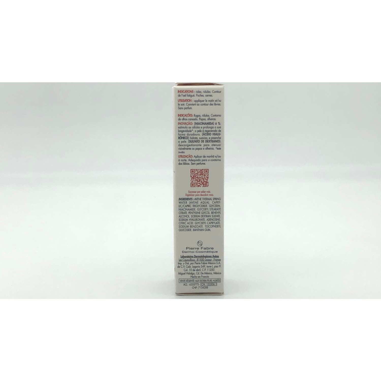 AVENE THERMAL SPRING WATER (AVENE AQUA), CAPRYLIC/CAPRIC TRIGLYCERIDE, GLYCERIN, NIACINAMIDE, DICAPRYLYL ETHER, CARTHAMUS TINCTORIUS (SAFFLOWER) SEED OIL (CARTHAMUS TINCTORIUS SEED OIL), MYRISTYL ALCOHOL, SODIUM DEXTRAN SULFATE, SODIUM HYALURONATE, TERMINALIA CHEBULA FRUIT EXTRACT, ADENOSINE, CETEARYL OLIVATE, CITRIC ACID, CITRUS LIMON (LEMON) PEEL POWDER (CITRUS LIMON PEEL POWDER), GLYCERYL BEHENATE, GLYCERYL DIBEHENATE, HELIANTHUS ANNUUS (SUNFLOWER) SEED OIL (HELIANTHUS ANNUUS SEED OIL), MYRISTYL GLUCOSIDE, SCLEROTIUM GUM, SODIUM BENZOATE, SORBITAN OLIVATE, TOCOPHEROL, TOCOPHERYL GLUCOSIDE, TRIBEHENIN.