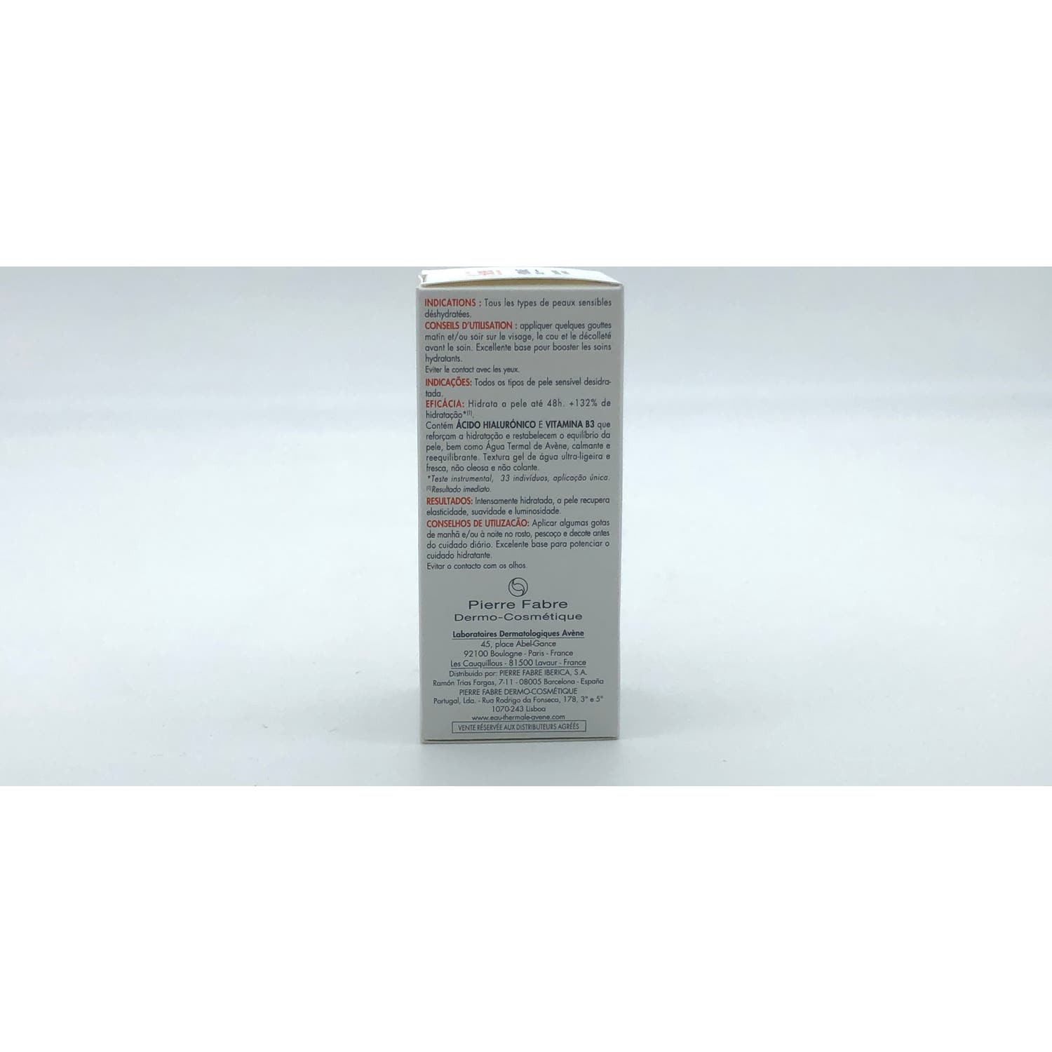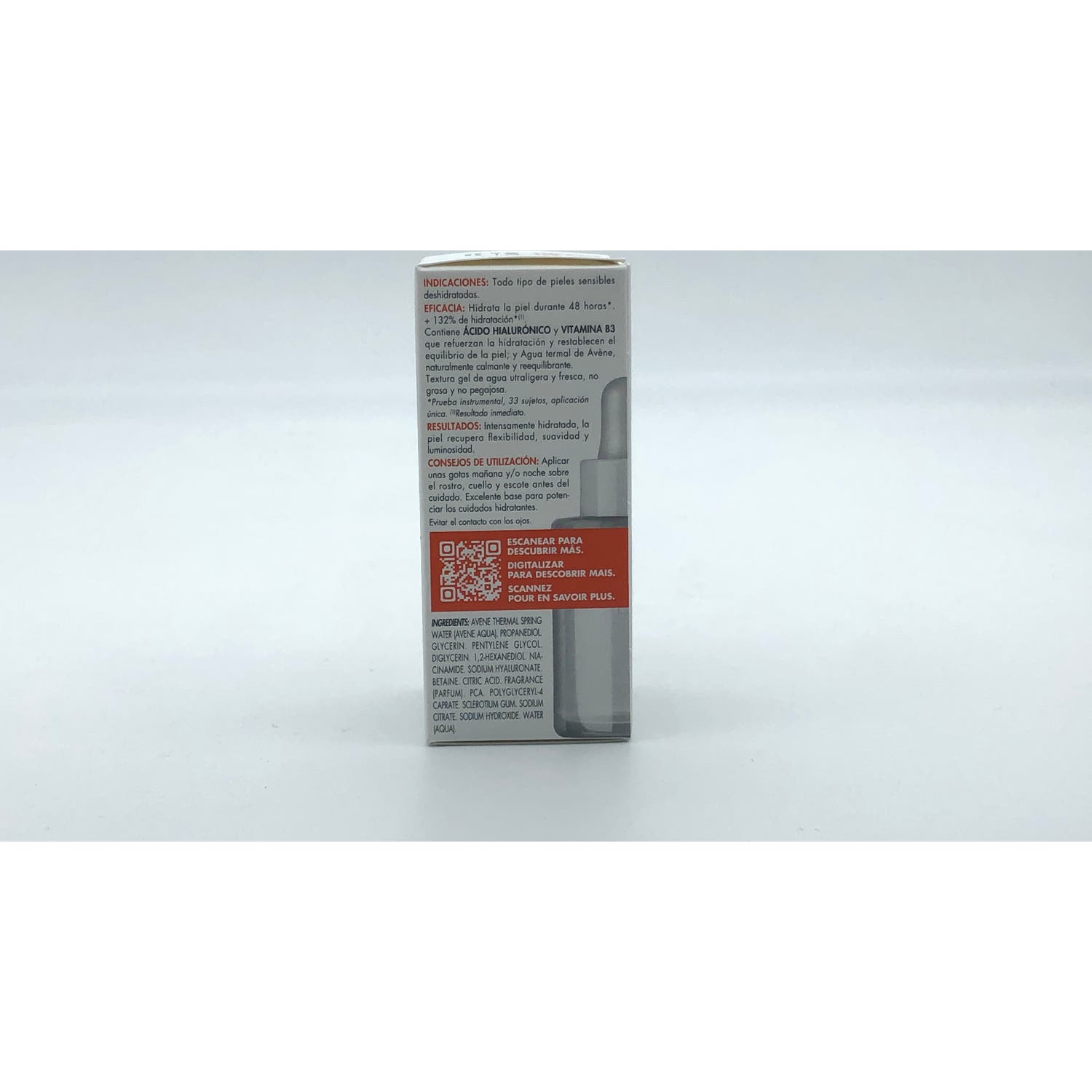 AVENE THERMAL SPRING WATER (AVENE AQUA). PROPANEDIOL. GLYCERIN. PENTYLENE GLYCOL. DIGLYCERIN. 1,2-HEXANEDIOL. NIACINAMIDE. SODIUM HYALURONATE. BETAINE. CITRIC ACID. FRAGRANCE (PARFUM). PCA. POLYGLYCERYL-4 CAPRATE. SCLEROTIUM GUM. SODIUM CITRATE. SODIUM HYDROXIDE. WATER (AQUA).
