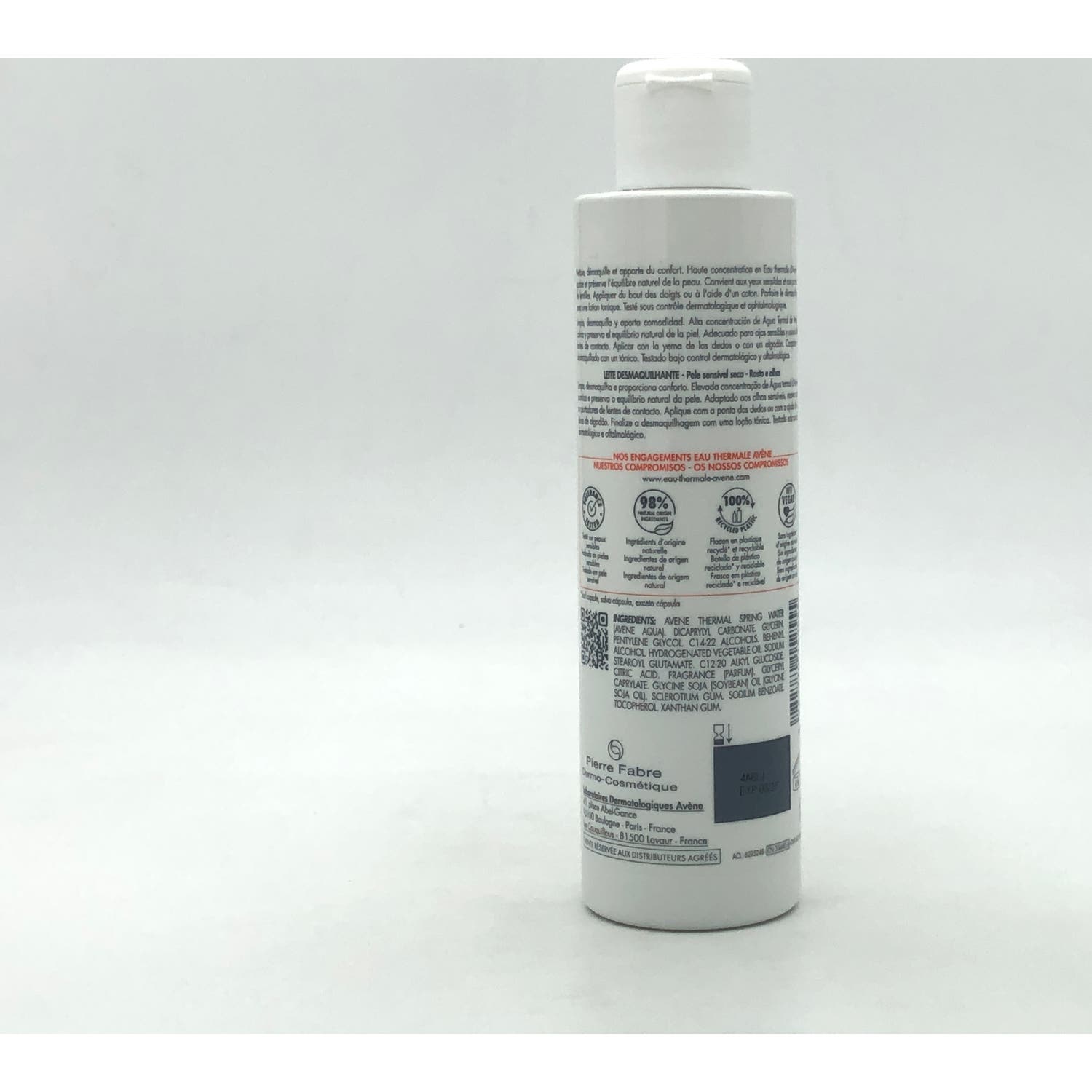 Avène Leche Limpiadora 200ml es un limpiador facial con un 98 % de ingredientes de origen natural que ayuda a desmaquillar y limpiar rostro y ojos, a la vez que disminuye la tirantez e hidrata la piel.