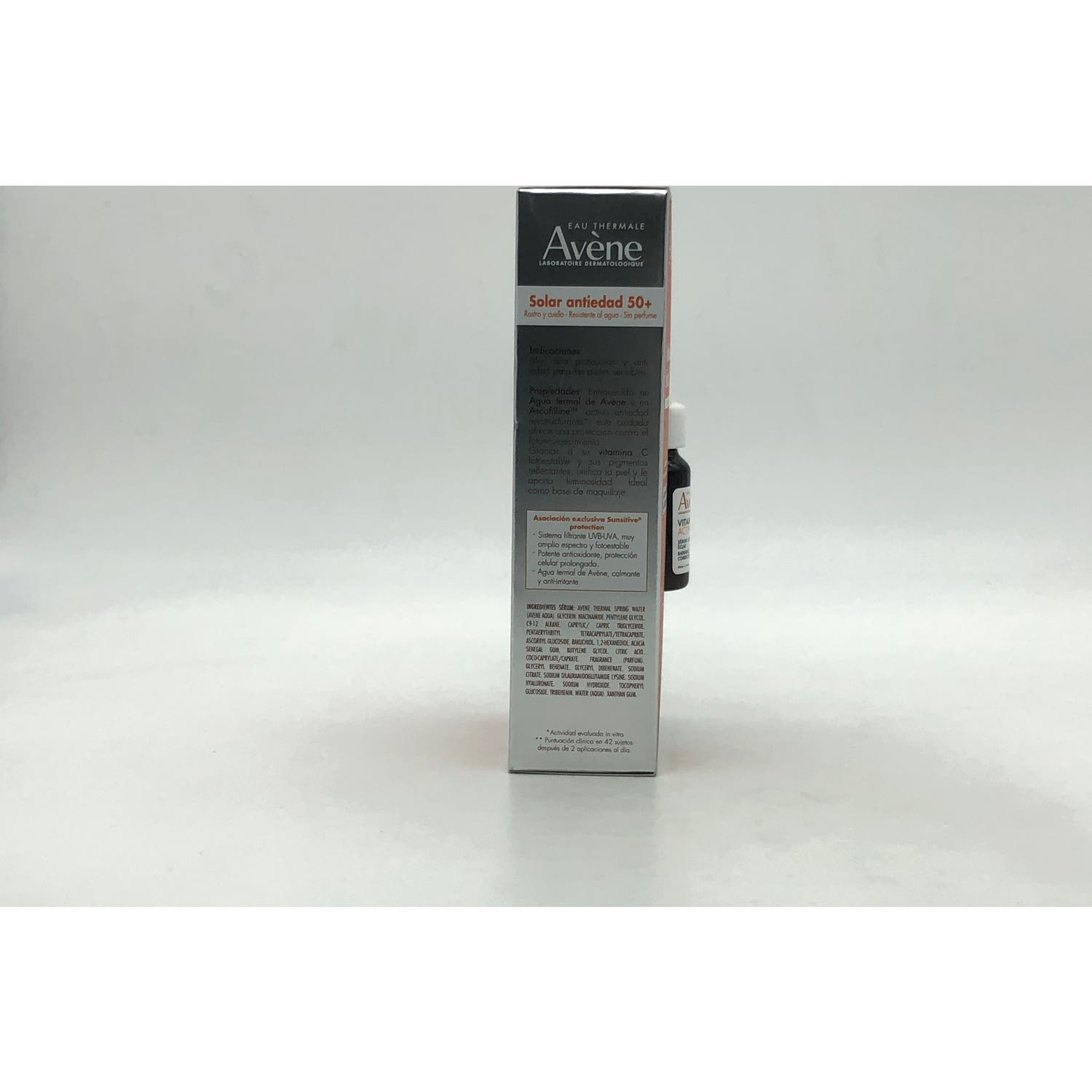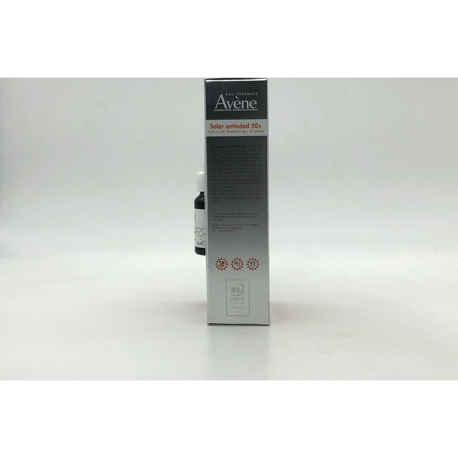 Avène Solar Antiedad 50+ Color 50Ml ofrece un espectro de protección amplio contra los UVB-UVA sin dejar ese residuo blanco. Su cualidad fotoestable (resistente al calor) aporta una muy alta protección en las pieles sensibles al sol, resistente al agua y no contiene silicona. La AscofilinaTM, es el activo anti-envejecimiento, combinado con el complejo de protección Sunsitive® que ayuda a prevenir el fotoenvejecimiento. Proporciona color a la piel.