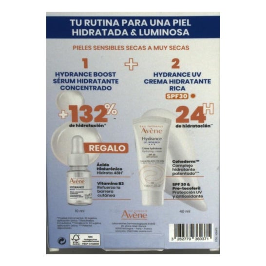 Avene Pack Hydrance Crema Hidratante Rica SPF30 + Hydrance Boost Sérum es un set de cuidado cutáneo que contiene: