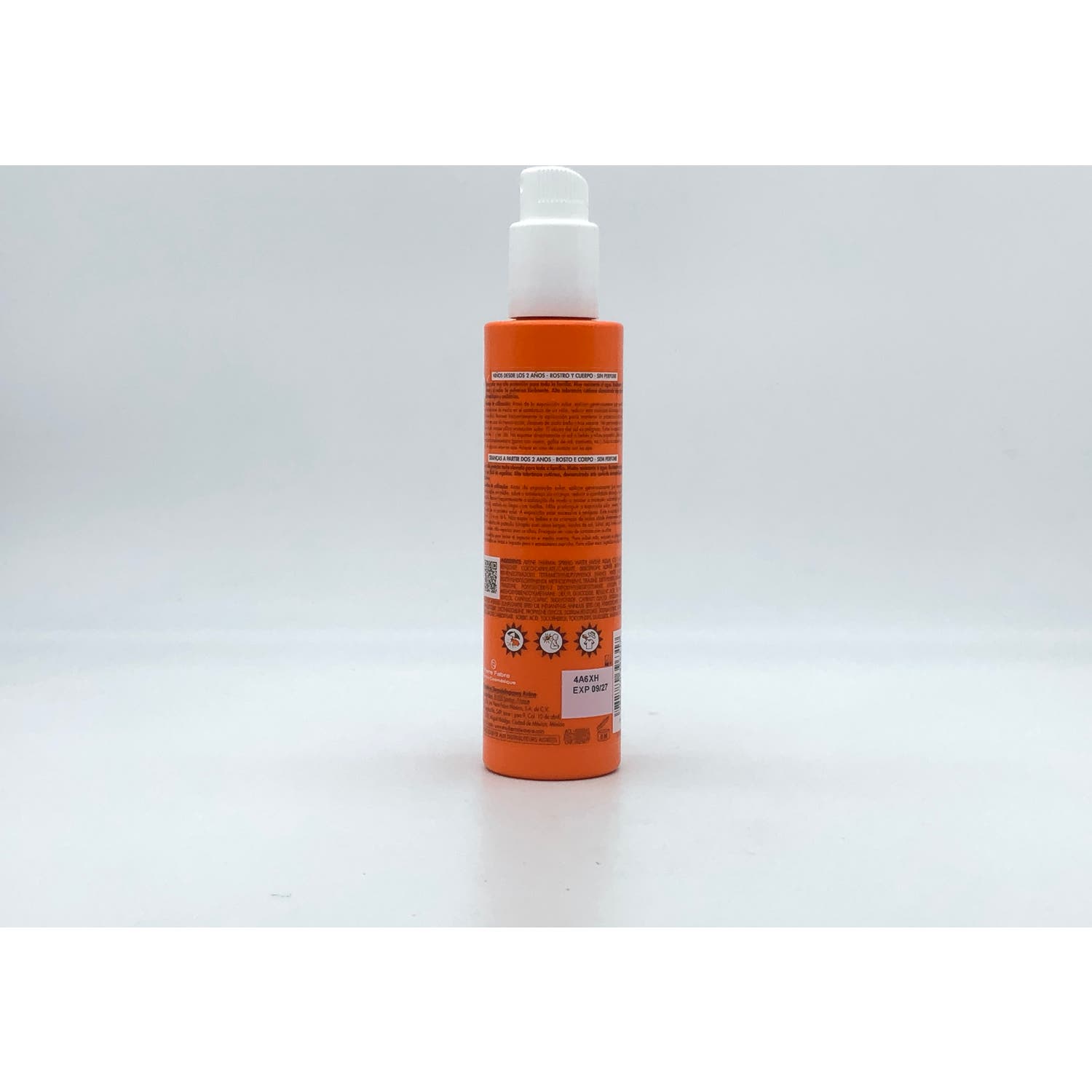 Avène Solar Spray Niños SPF50+ 200ml es un protector solar facial y corporal para niños. Es resistente al agua y contribuye a proteger la piel gracias a su fuerte filtro solar SPF 50+.