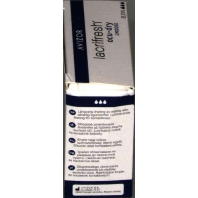 Las Avizor Lacrifresh Ocu-Dry 0,30% Monodosis son una solución formulada con el mismo principio activo que las lágrimas sanas y ayudarán en los momentos en que necesites un aporte extra de lubricación y limpieza del ojo por síntomas de sequedad ocular de moderada a grave. Indicado para su utilización por la noche.