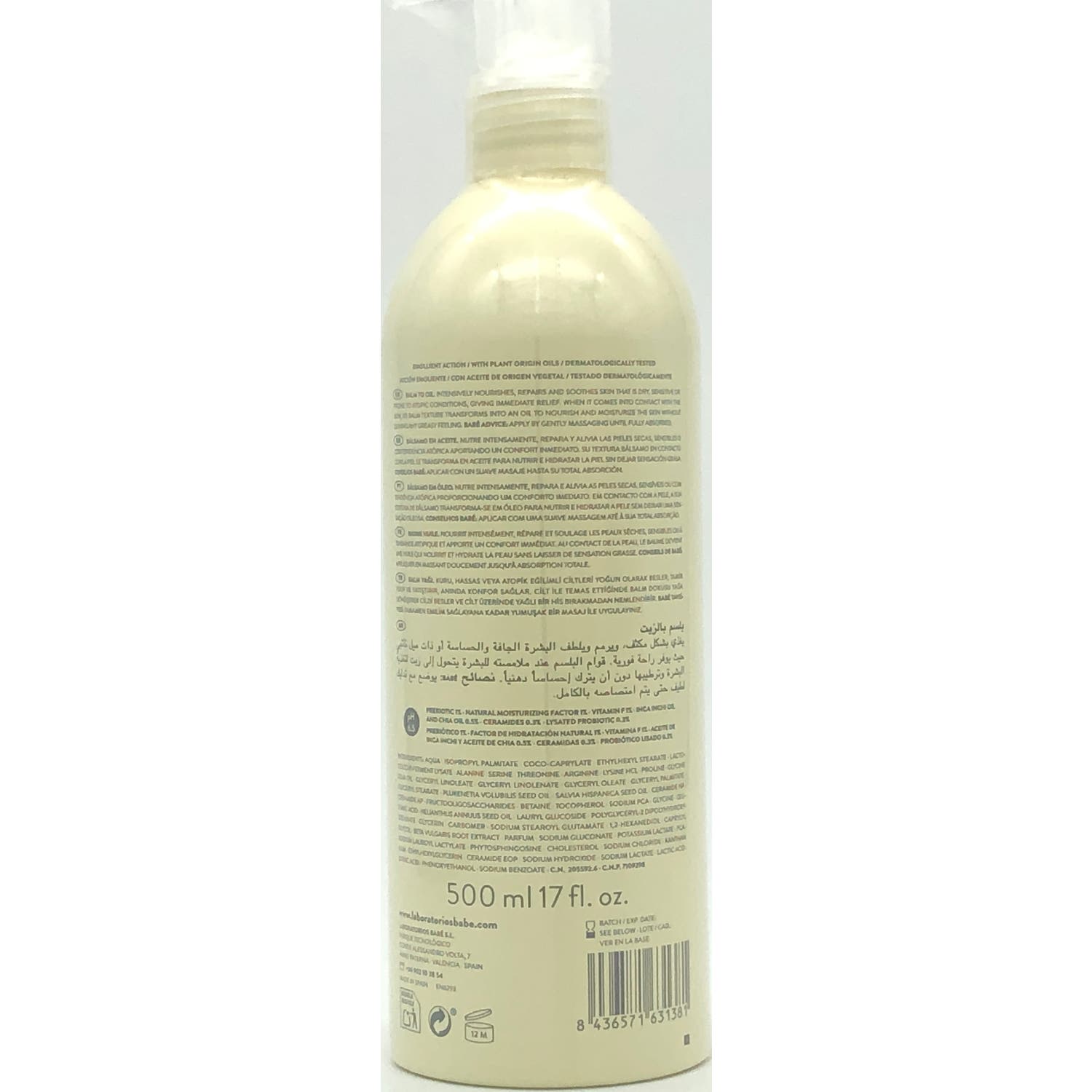 Babé Bálsamo en Aceite 500ml es un bálsamo corporal con una fórmula hidratante y dermoprotectora.