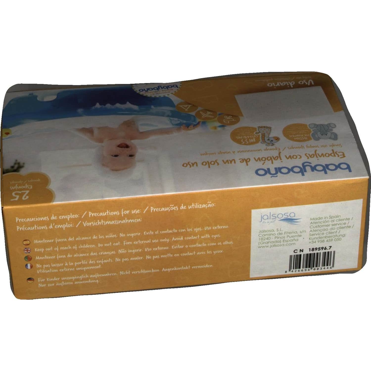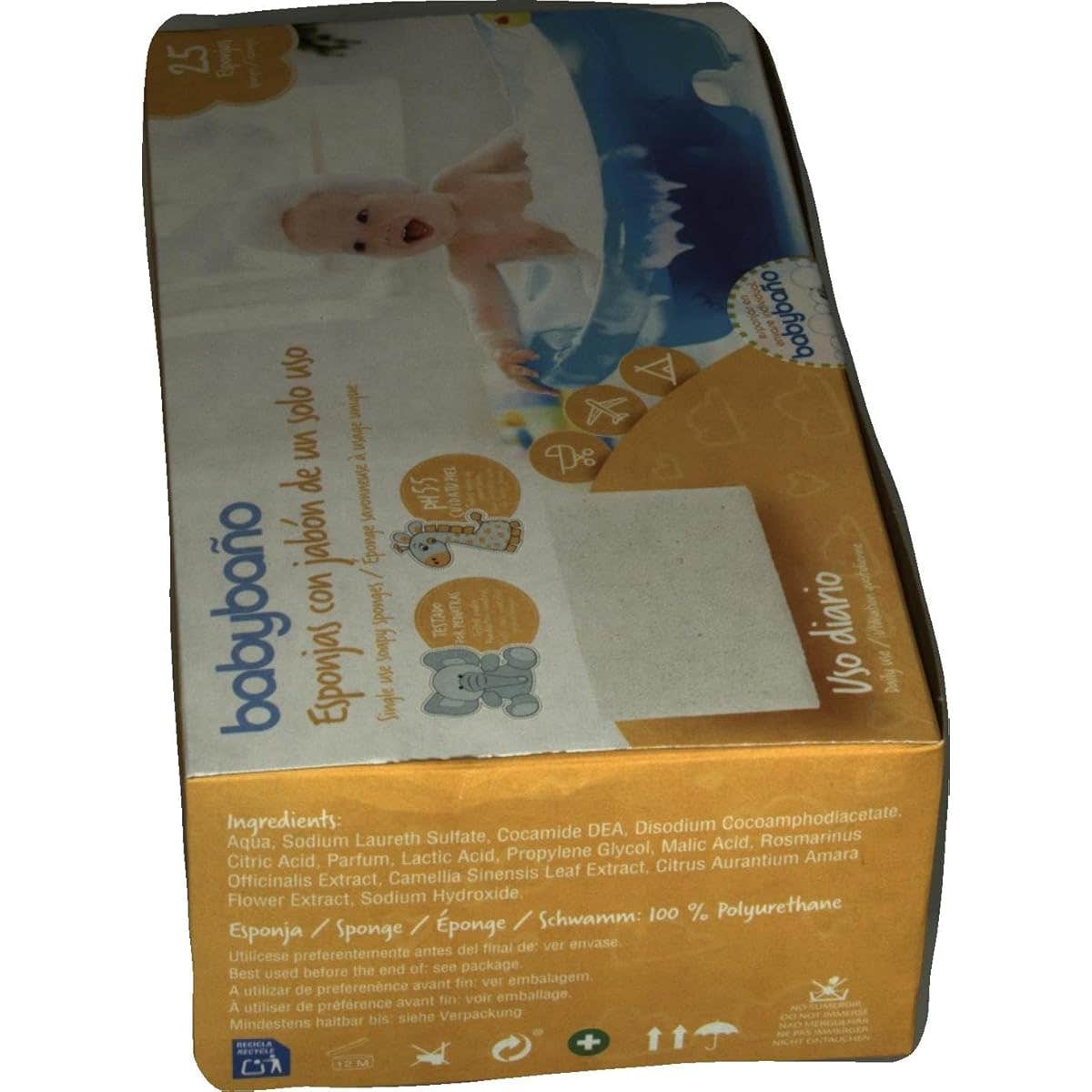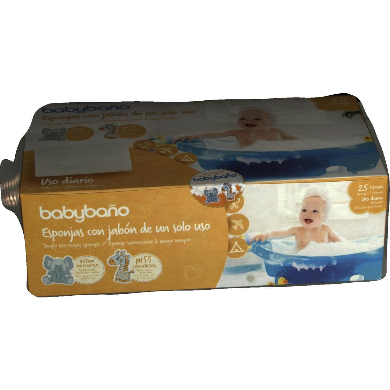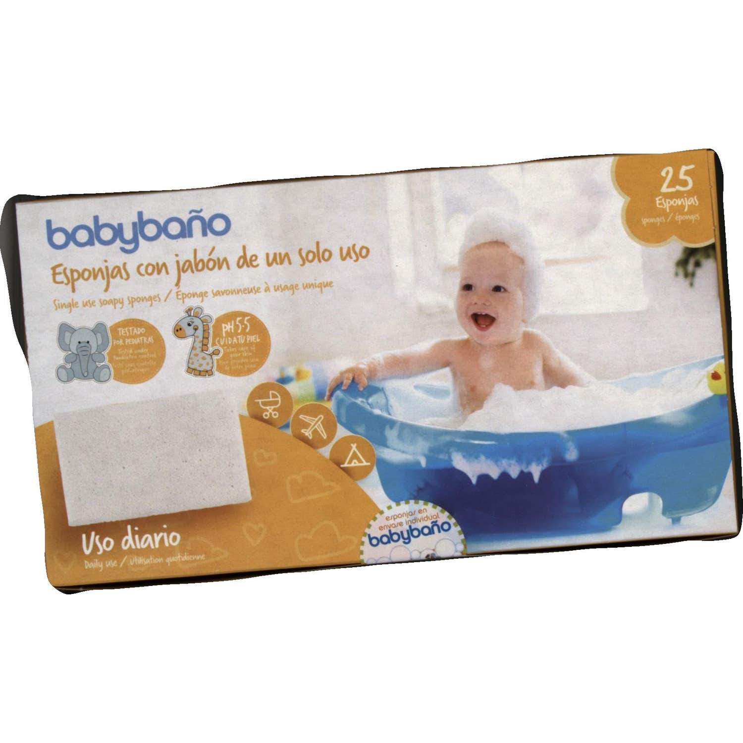 Babybaño Esponja Jabonosa De Un Solo Uso Para Bebés es una esponja con jabón incorporado para bebés de 0 a 3 años. Con perfume de melocotón.