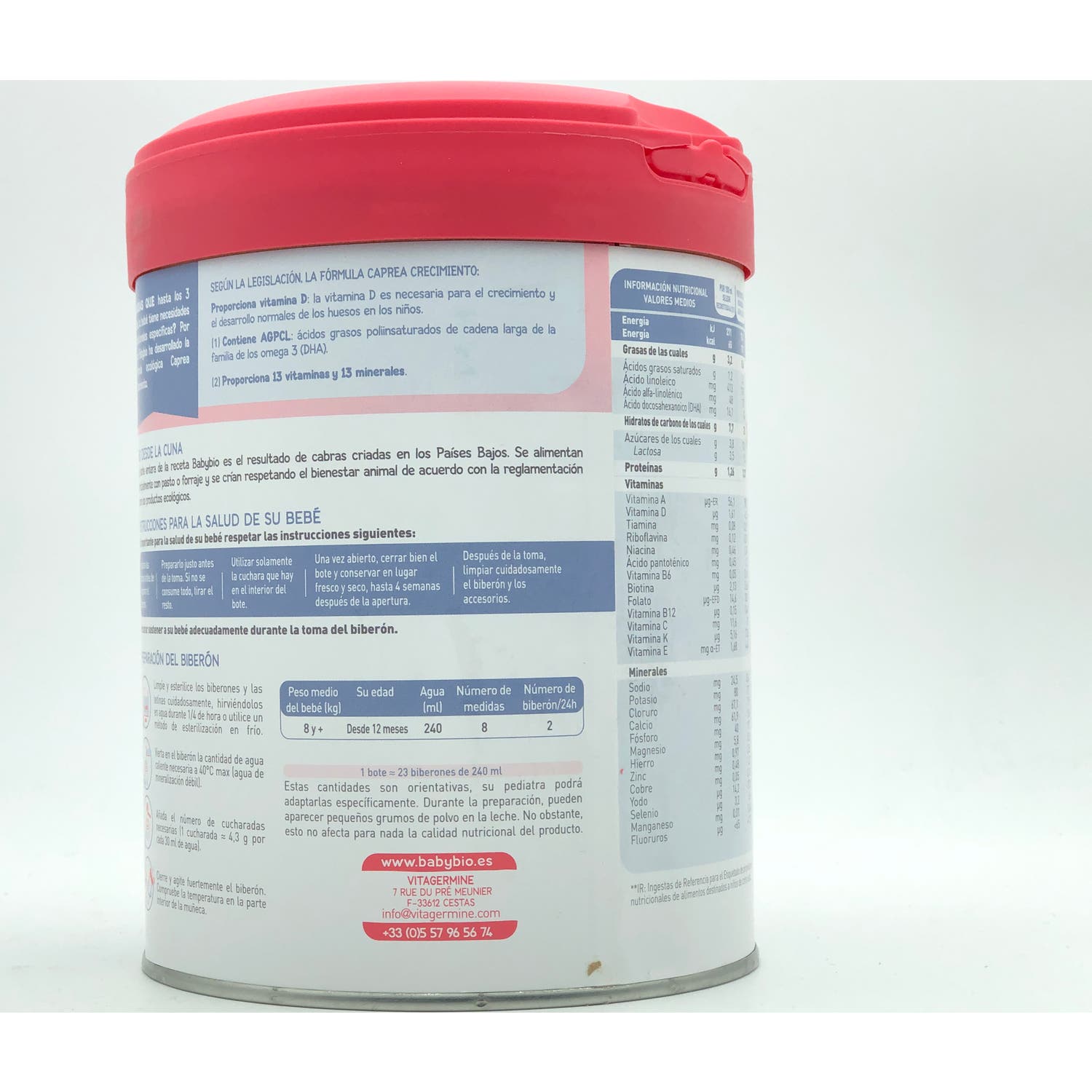 BabyBio Leche Caprea 3 Bio 800g es leche de cabra indicada para bebés a partir de los 12 meses de edad que ayuda a aportar nutrientes en la dieta del pequeño, gracias a su riqueza en vitaminas y minerales.