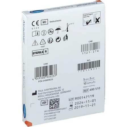 Atrauman 5 x 5 cm es un vendaje de Paul HARTMANN AG. Atrauman son compresas de sal de uso único, estériles y sin principios activos, para el tratamiento de heridas superficiales, agudas y crónicas de cualquier tipo.