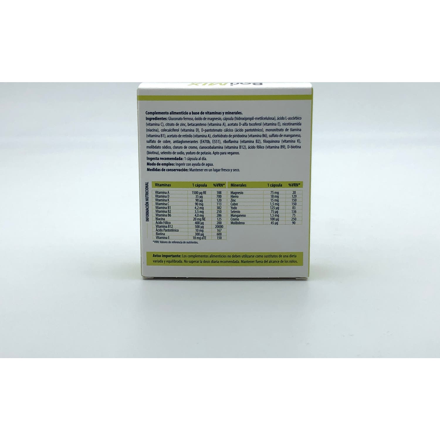 Este suplemento aporta una combinación de vitaminas y minerales. Contiene calcio, vitamina A, D, E, K, C, B1, B2, B6, ácido fólico, hierro, magnesio, zinc, selenio, yodo y cromo.