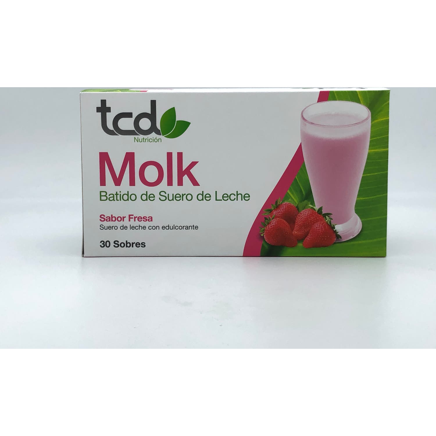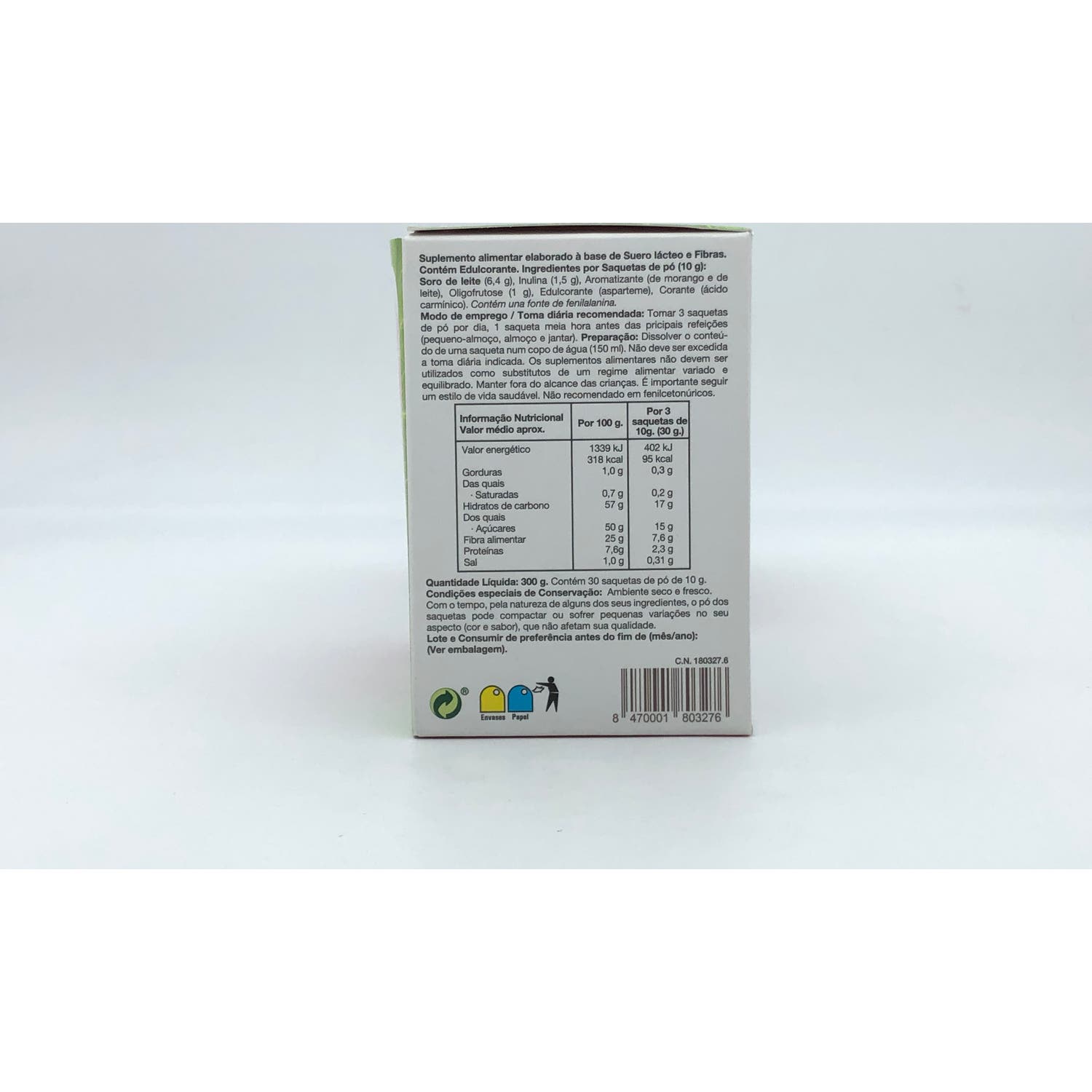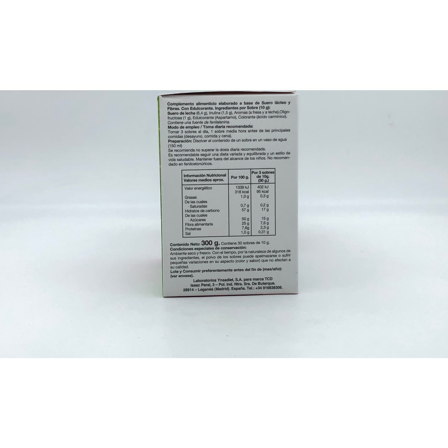 Batido de suero de leche con sabor a fresa en formato de sobres, que: