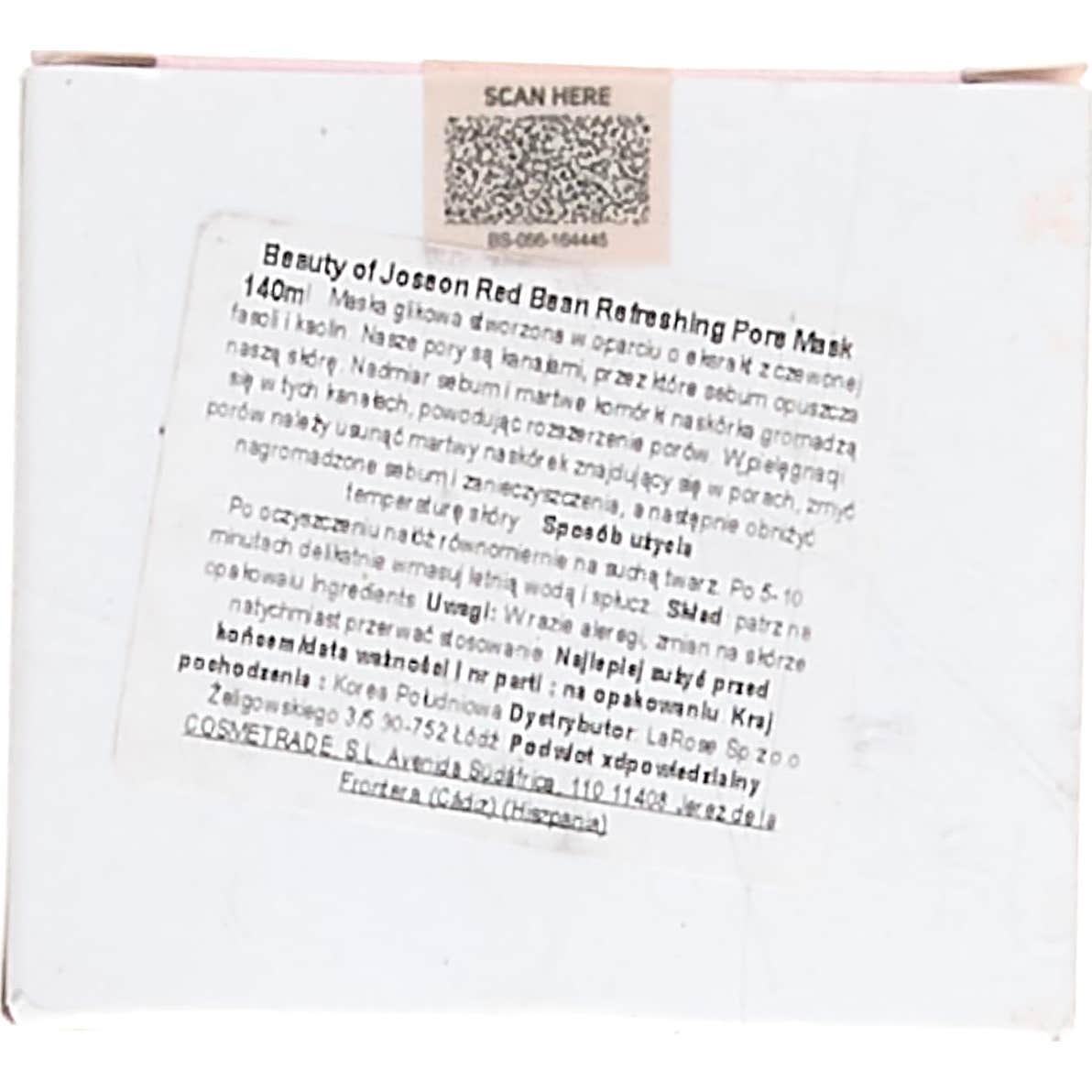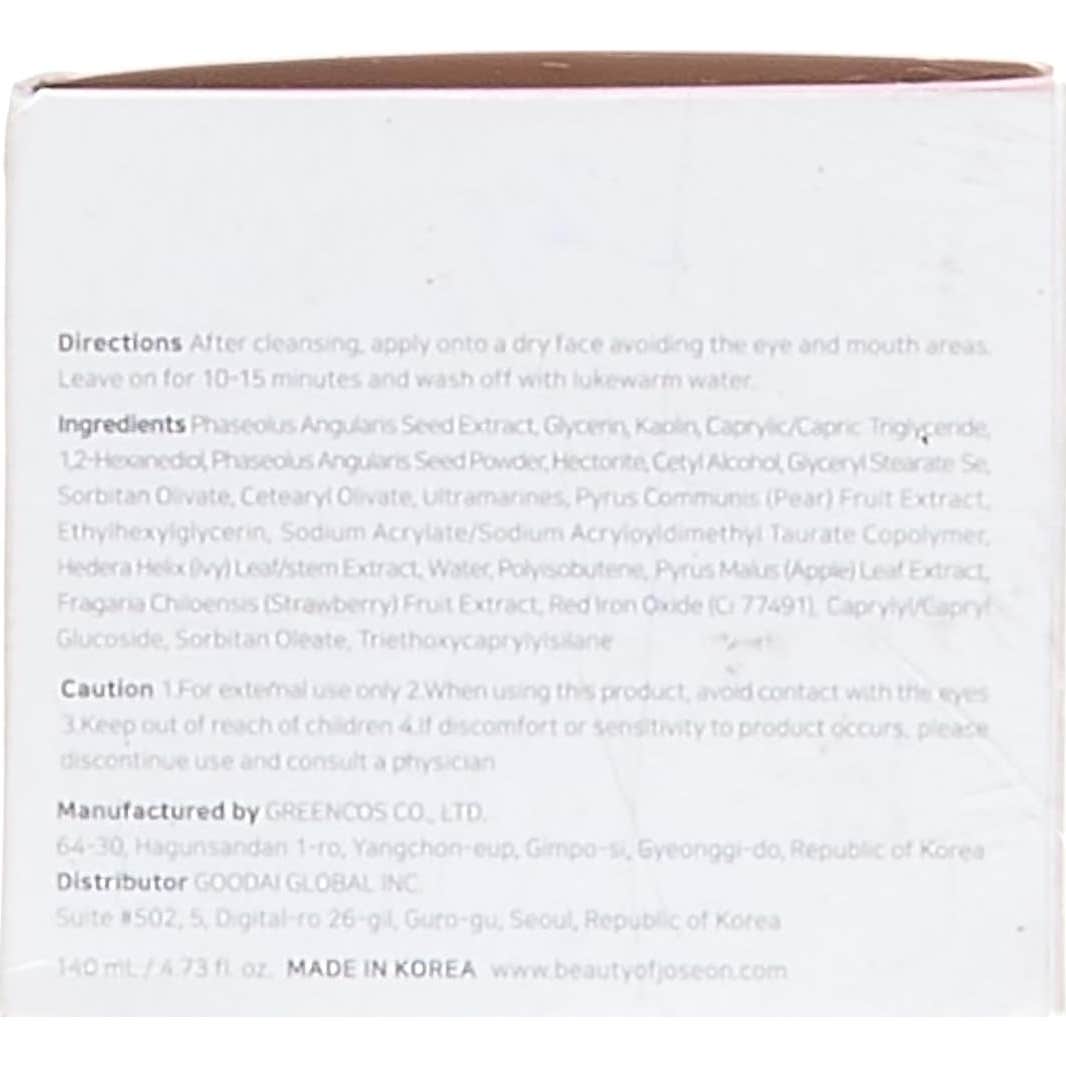 Beauty of Joseon Red Bean Refreshing Pore Mask 140ml es una mascarilla purificante 100% natural que elimina las impurezas, células muertas y exceso de sebo, fuentes de poros obstruidos e imperfecciones.