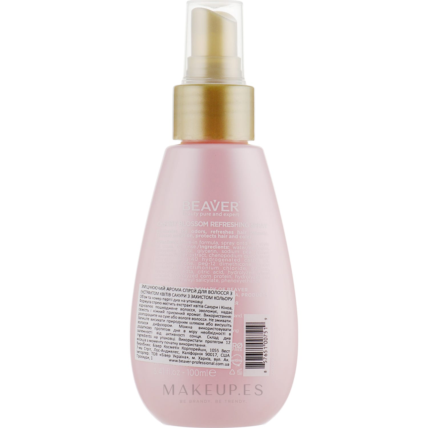 Beaver Beauty Cherry Blossom Spray Aroma Mist 100 ml es un spray capilar ligero que ofrece protección y realce a tu melena. Su fórmula está diseñada para hidratar, refrescar y mantener el color de tu cabello, proporcionando un brillo natural y radiante.