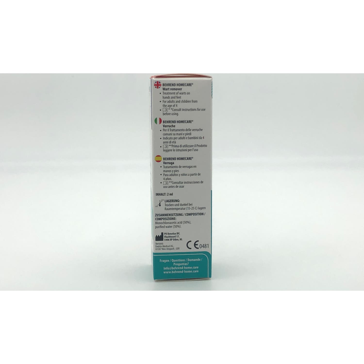 Behrend Homecare Contra la Verruga 2ml es un tratamiento eliminador de verrugas que ayuda a disolverlas de forma una forma fácil y eficaz.