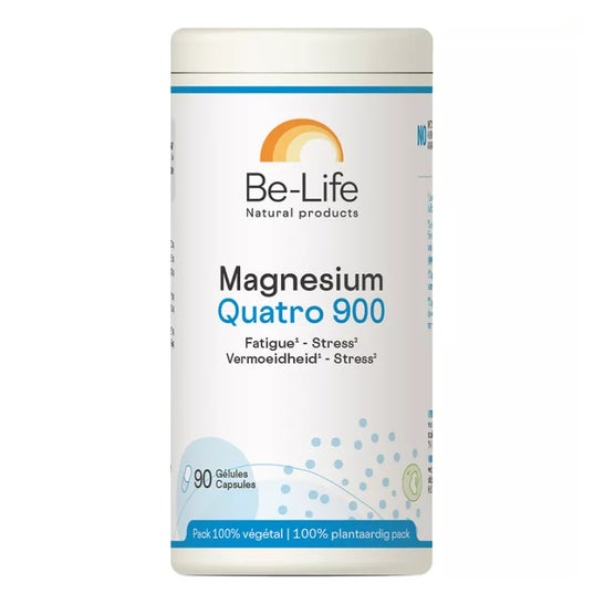 Magnesio Quatro 900 de Be-Life es un complemento alimenticio a base de 3 sales de magnesio altamente asimilables que ayuda a reducir la fatiga y contribuye a un metabolismo energético normal. El magnesio también contribuye al buen funcionamiento del sistema nervioso, a una buena función muscular y al mantenimiento de dientes y huesos sanos.