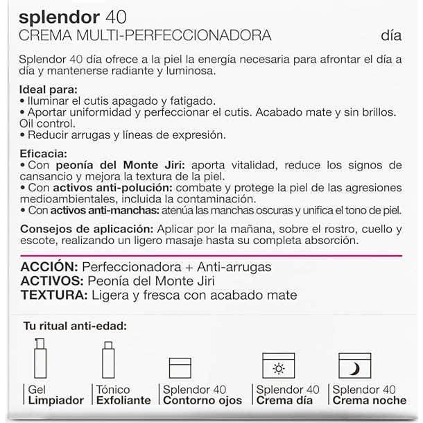 Elaborado con la combinación de extracto de la flor de la Peonía del monte Jiri, un activo despigmentante y células madre de la Granada que combate los radicales libres y extractos naturales que protegen contra la agresión de los contaminantes tóxicos ambientales. Además, posee SPF20 que protege frente a los rayos UVA, UVB, Infrarrojos (IR) y luz visible (HEV).