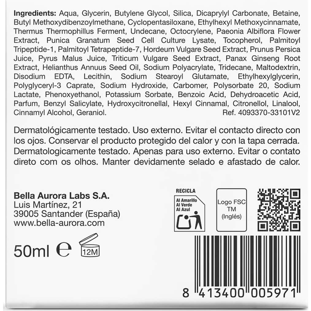 Bella Aurora Bella Crema Día Multi-Perfeccionadora Piel Mixta-Grasa 50ml es una crema antiedad hidratante.