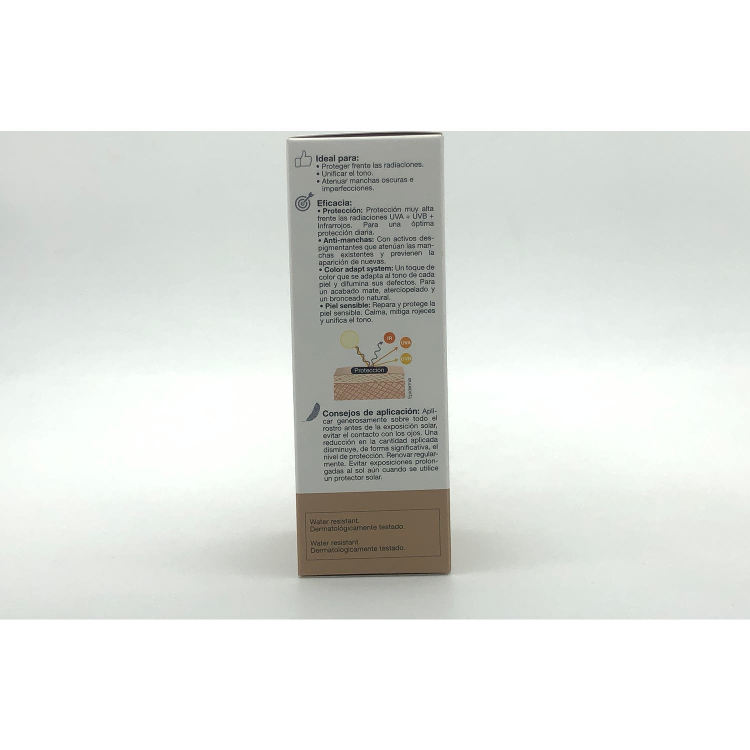 Previene el fotoenvejecimiento y unifica el tono de la piel con un toque de color. Resistente al agua. Hipoalergénico.