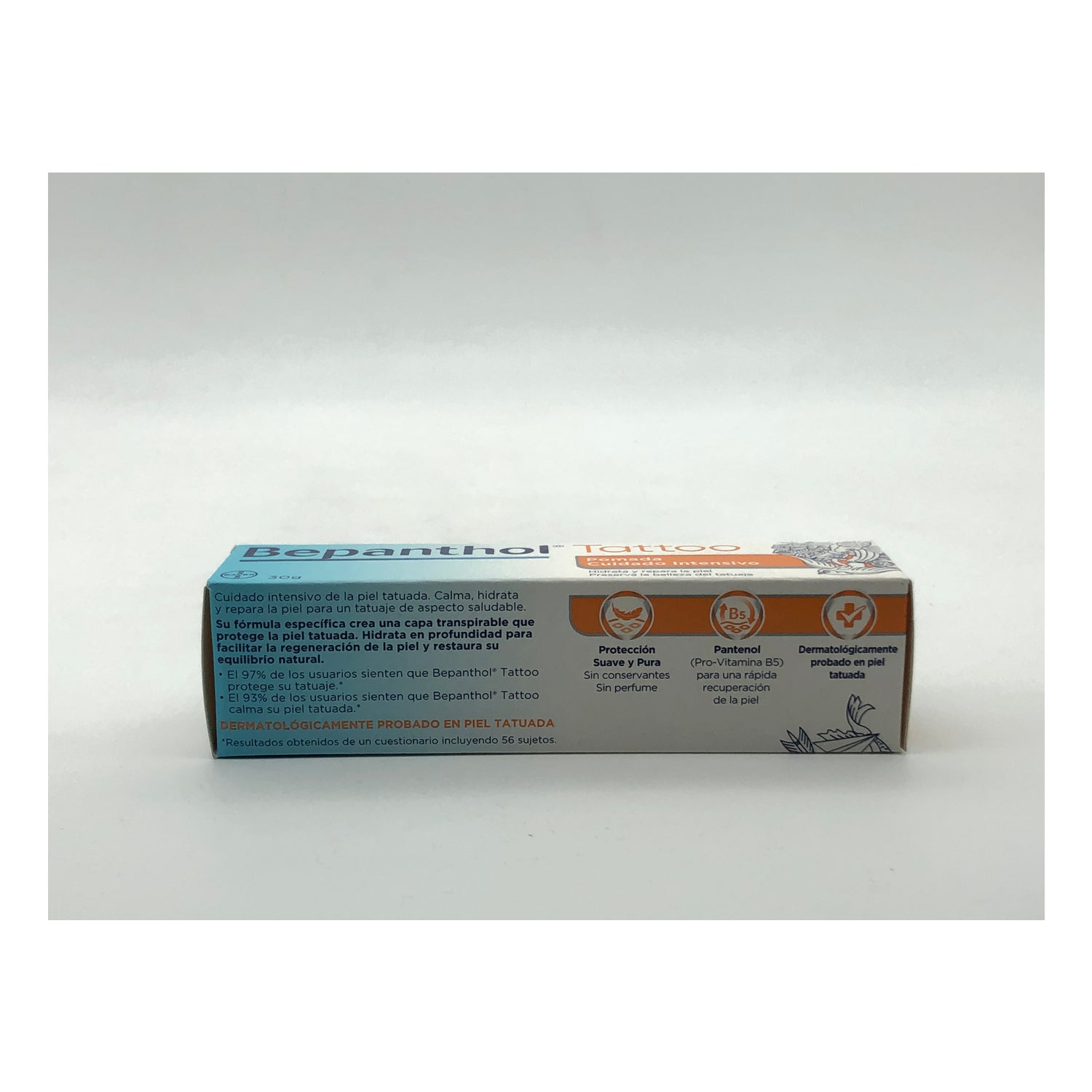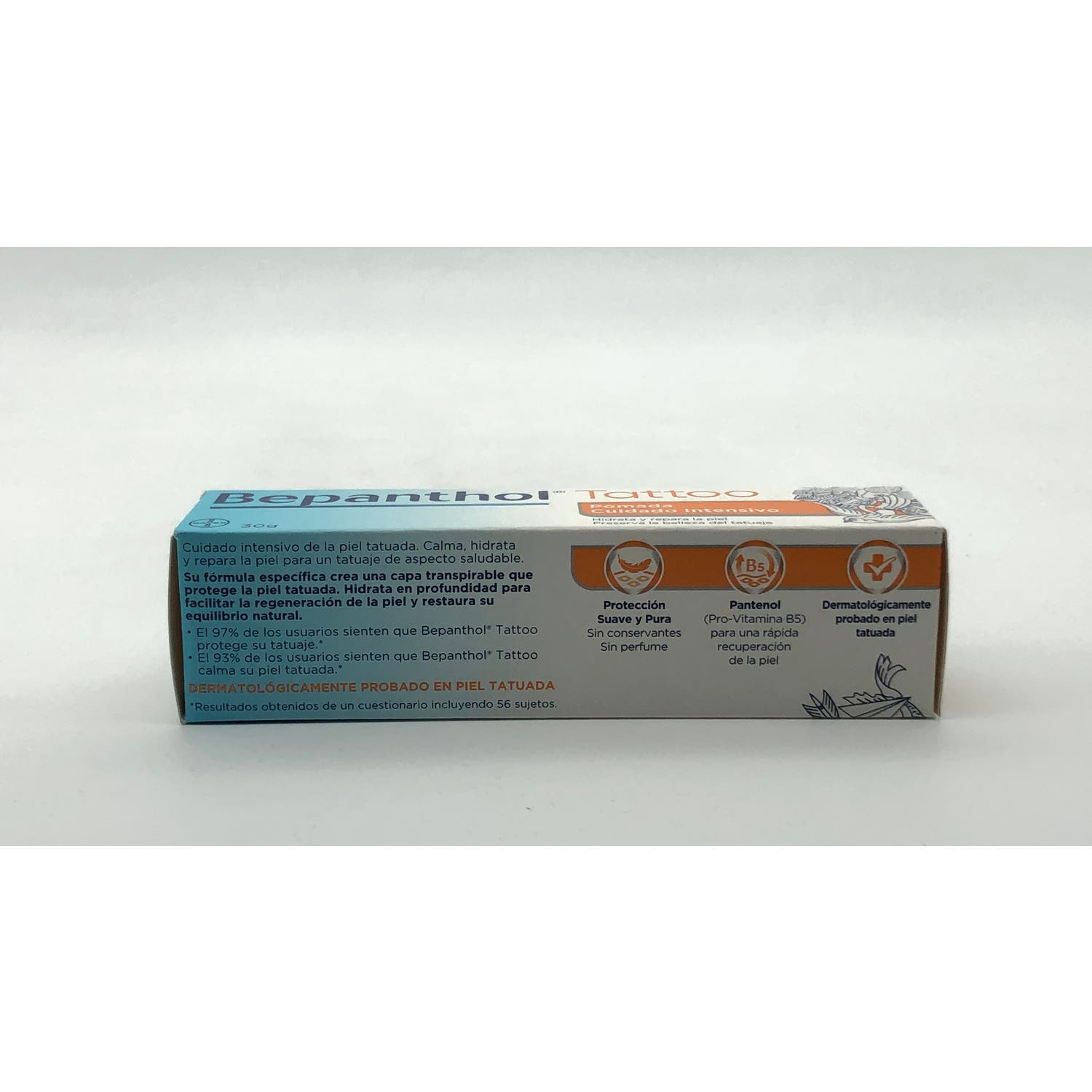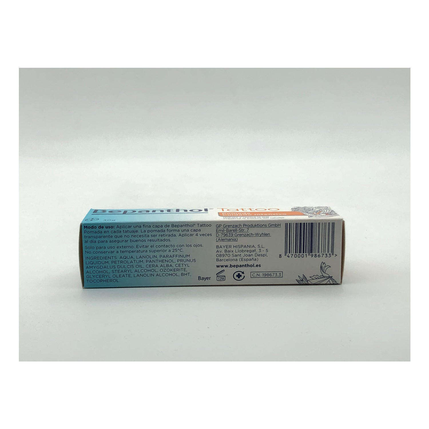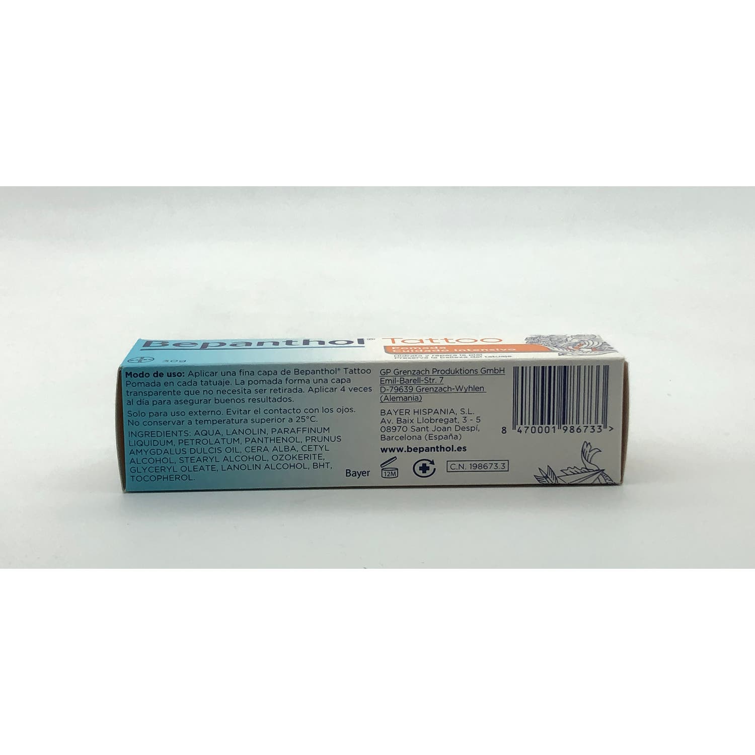 Bepanthol Tattoo Pomada Cuidado Intensivo 30g es una pomada protectora multifuncional que cuida y protege diferentes afecciones cutáneas, entre las que se encuentra un tatuaje. Gracias a sus agentes lipídicos protege y repara e hidrata por su contenido en pantenol, que también contribuye al proceso natural de regeneración.