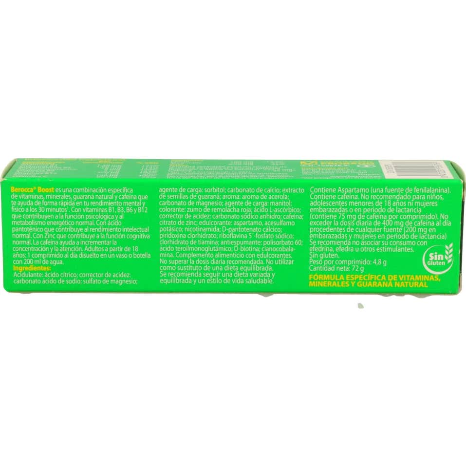 Berocca® Boost efervescente 15comp es un complemento alimenticio en formato efervescente con sabor a cereza.