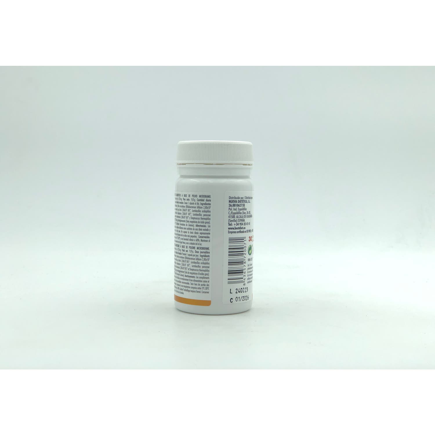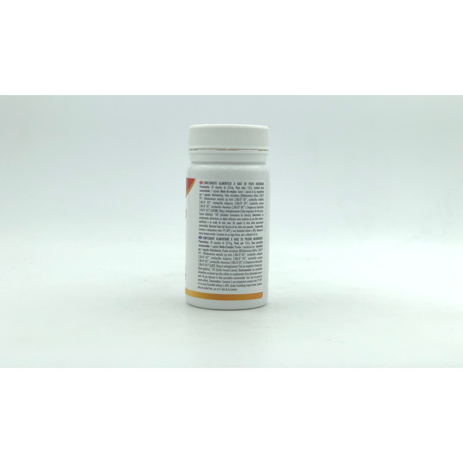 Complemento alimenticio en forma de cápsulas, elaborado a base de fermentos lácticos de lactobacilos y bifidobacterias, que mejoran el sistema digestivo.