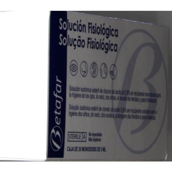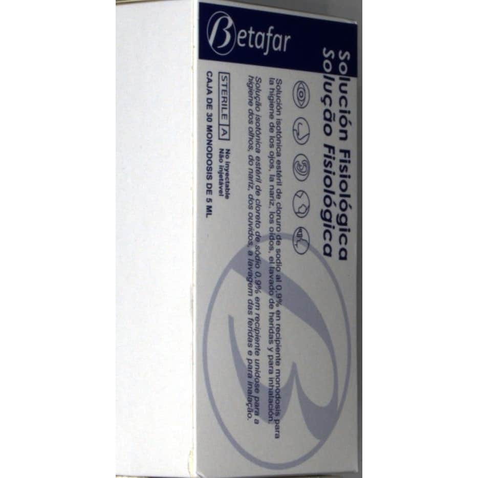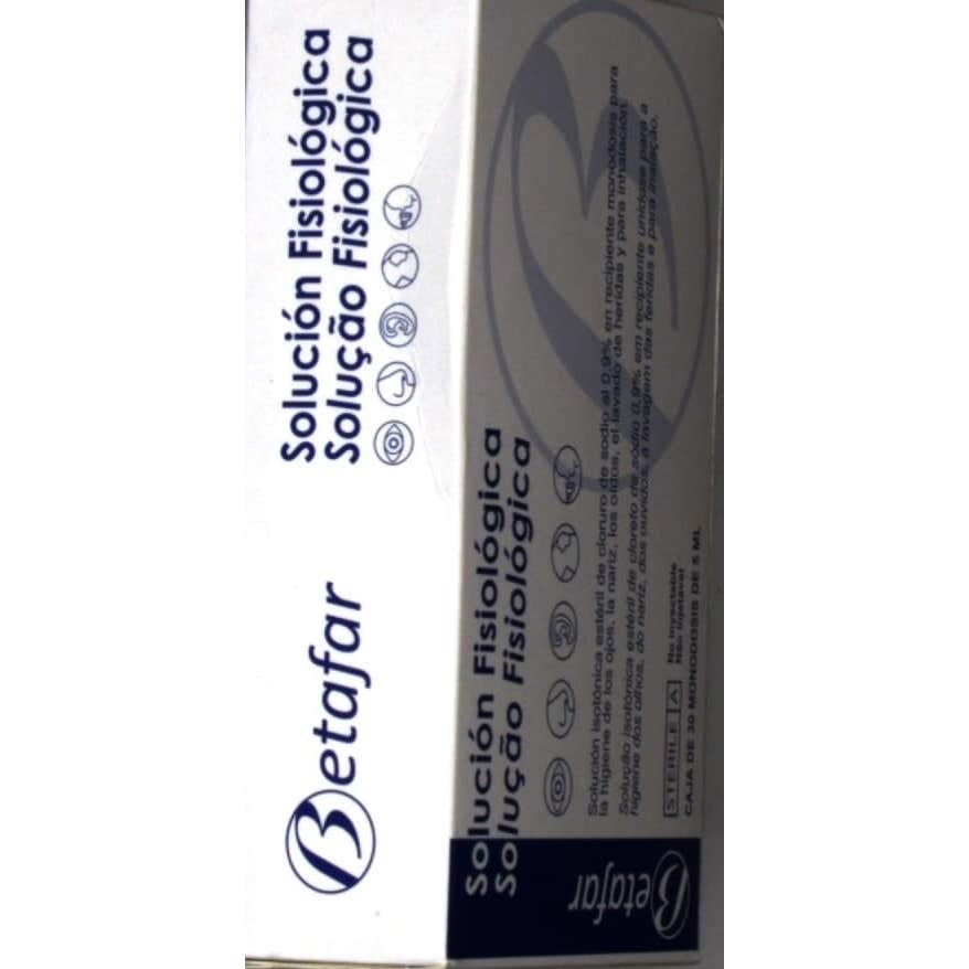 Betafar suero fisiológico estéril es una solución estéril de limpieza de la nariz y de los ojos presentada en cómodas y transporables monodosis. Esta solución actúa gracias a un arrastre mecánico, por lo que está especialmente indicada en personas con ojos y fosas nasales sensibles. Las principales funciones de este producto son: