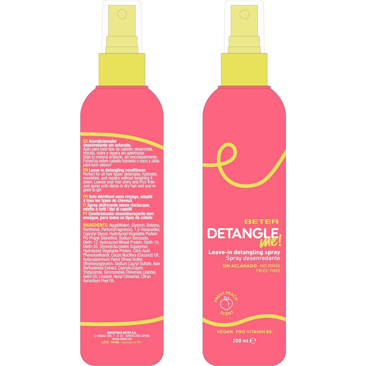 Beter Detangling Spray Leave In Detangle Me 200 ml desenredante sin aclarado elimina los nudos al instante y facilita el peinado sin tirones. Está indicado para cabellos largos, rizados o con tendencia a enredarse, tanto en adultos como en niños.