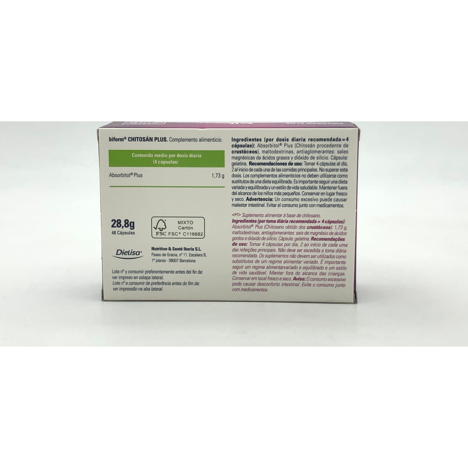 Biform Chitosán Plus 48caps es un complemento alimenticio a base de chitosán que ayuda a controlar el peso, gracias a sus propiedades hipolipemiantes y antiinflamatorias.