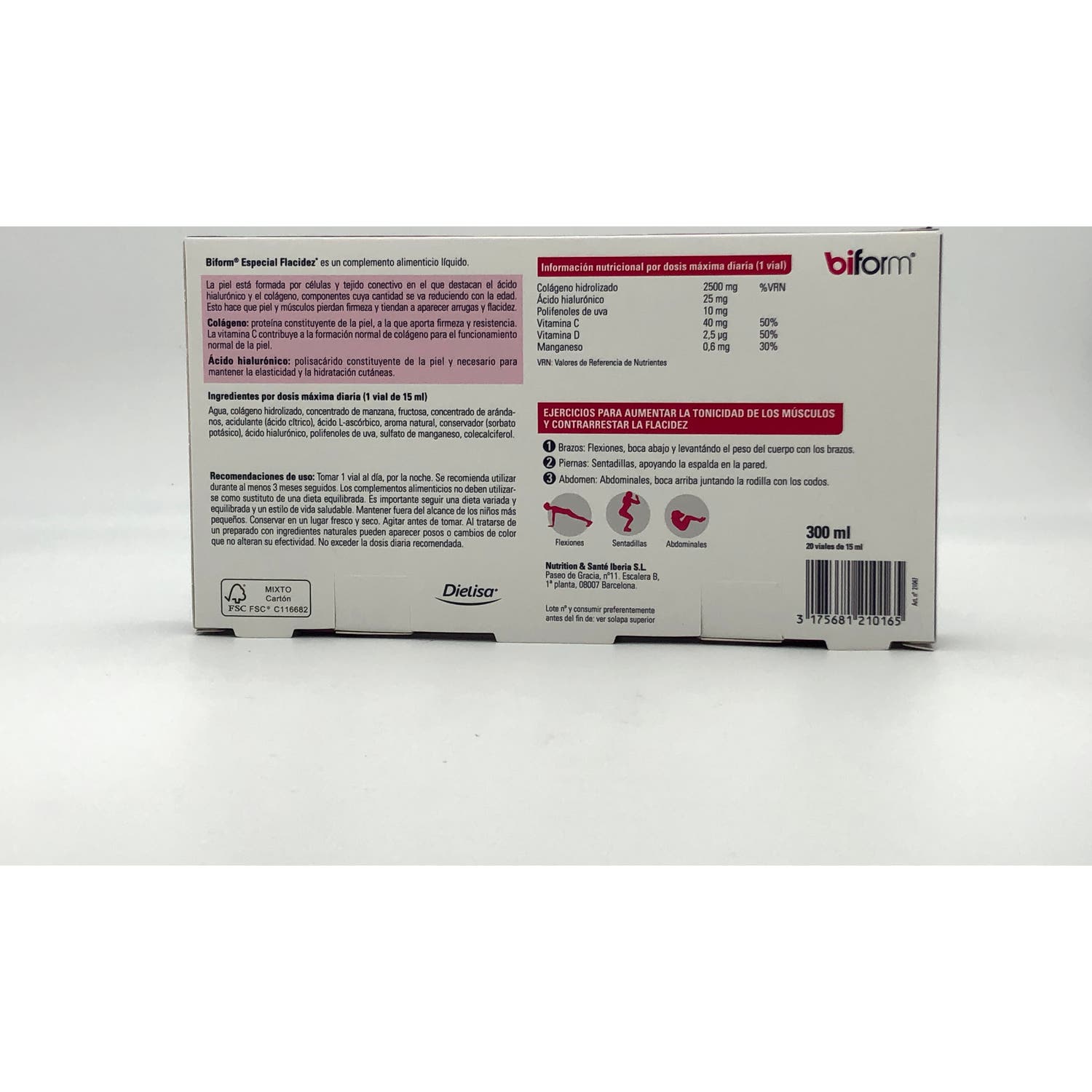 Biform Especial Flacidez 20 viales es un complemento alimenticio que ayuda a la formación de colágeno y a combatir la flacidez de la piel.