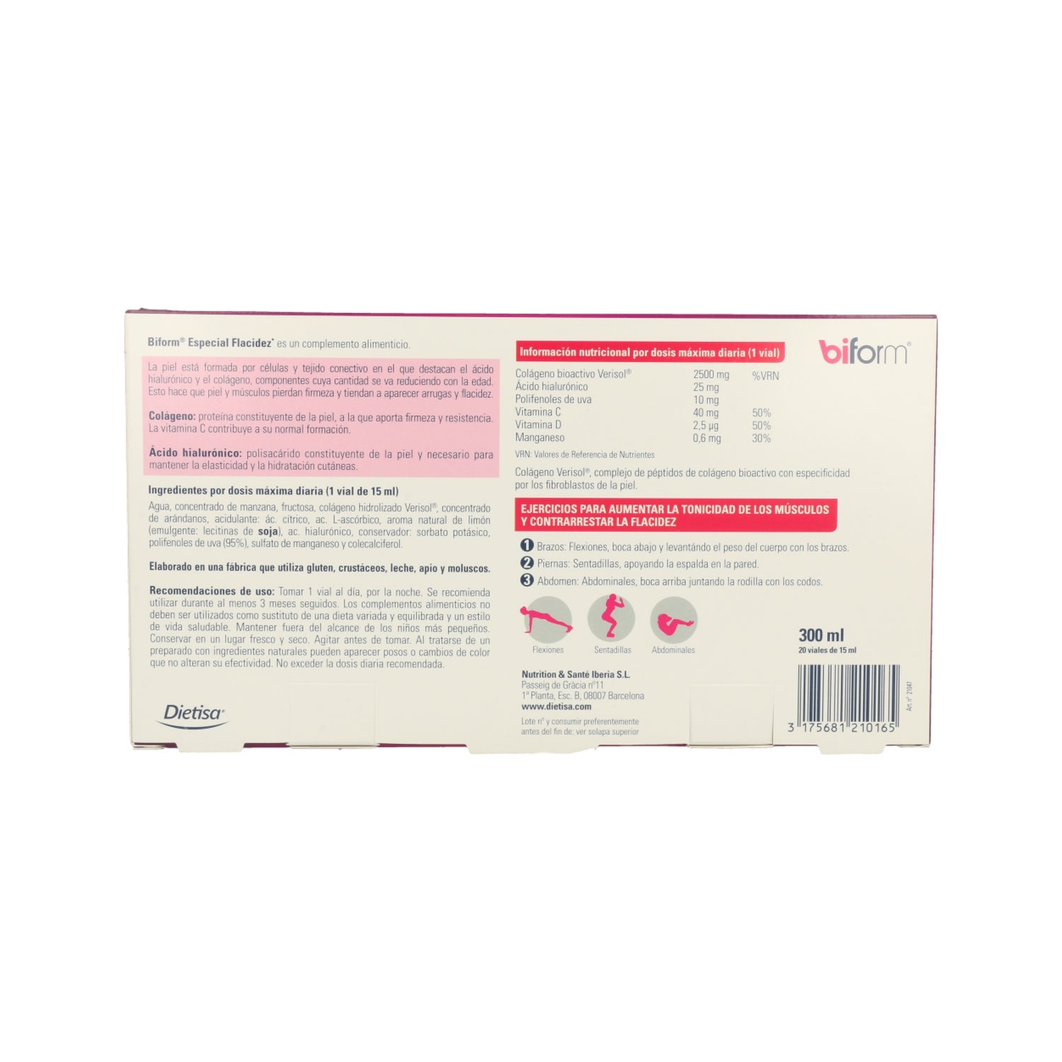 Biform Especial Flacidez 20 viales es un complemento alimenticio que ayuda a la formación de colágeno y a combatir la flacidez de la piel.